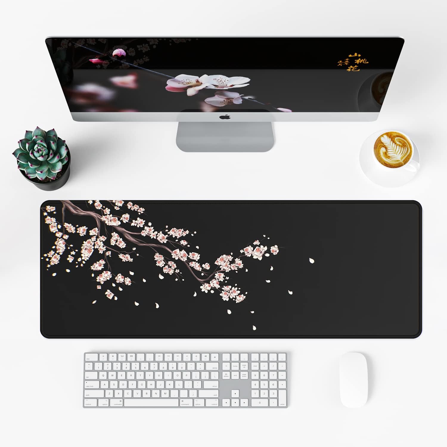 Геймърска подложка за мишка EFISH Pink and Black Cherry Blossom (800×300×3MM) - Удължена голяма подложка за мишка с неплъзгаща се гумена основа и зашити ръбове