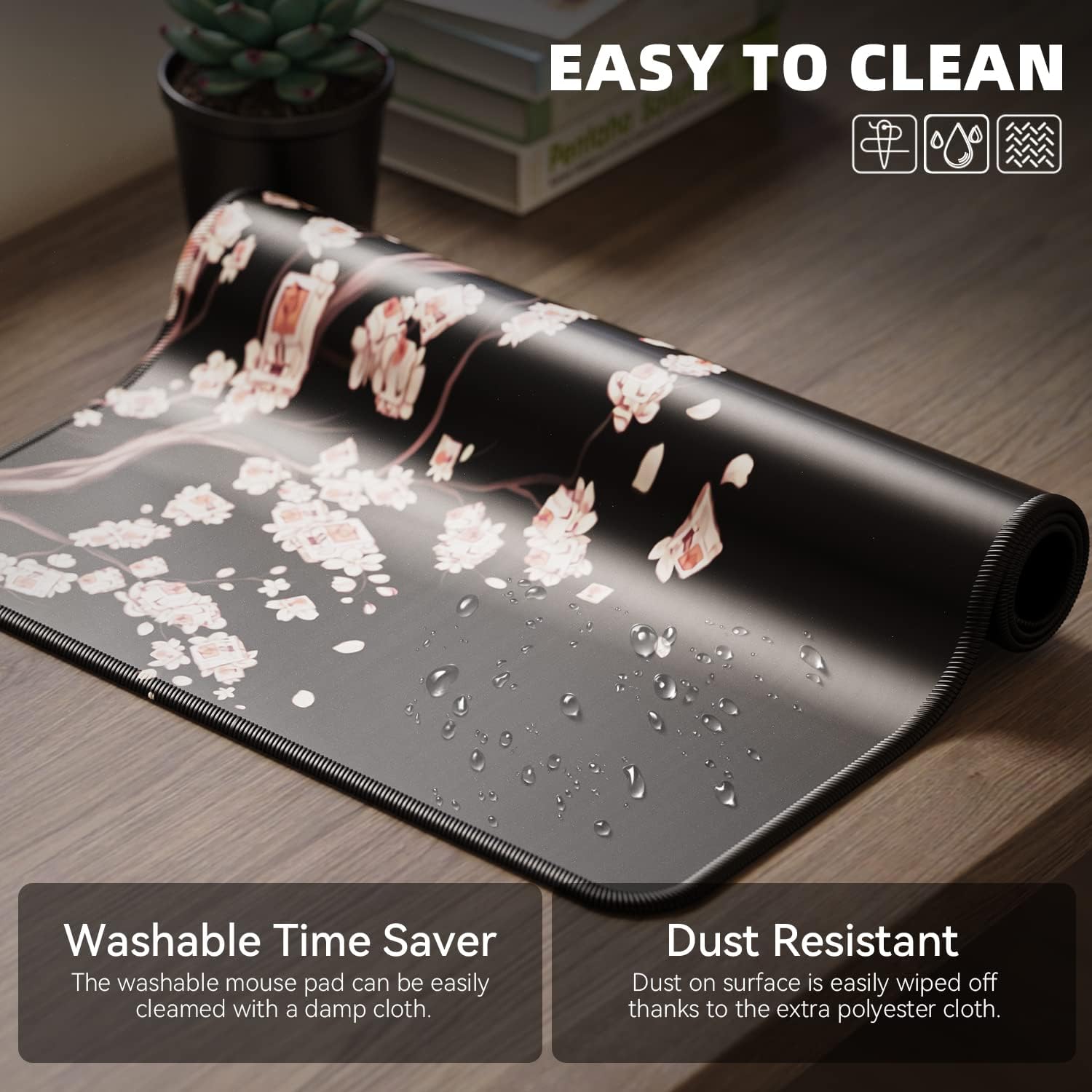 • 【Лесно почистване】:Тази подложка за клавиатура е лесна за почистване и е устойчива на инциденти, така че течностите могат лесно да се избършат с влажна кърпа и това няма да забави работата/играта ви.