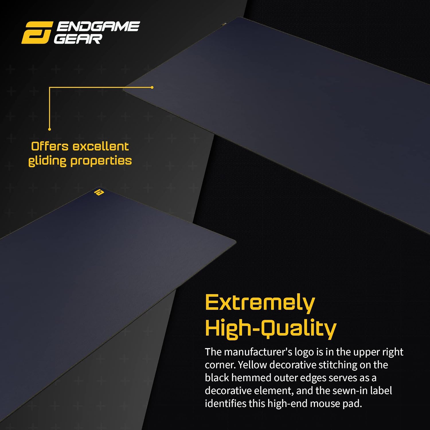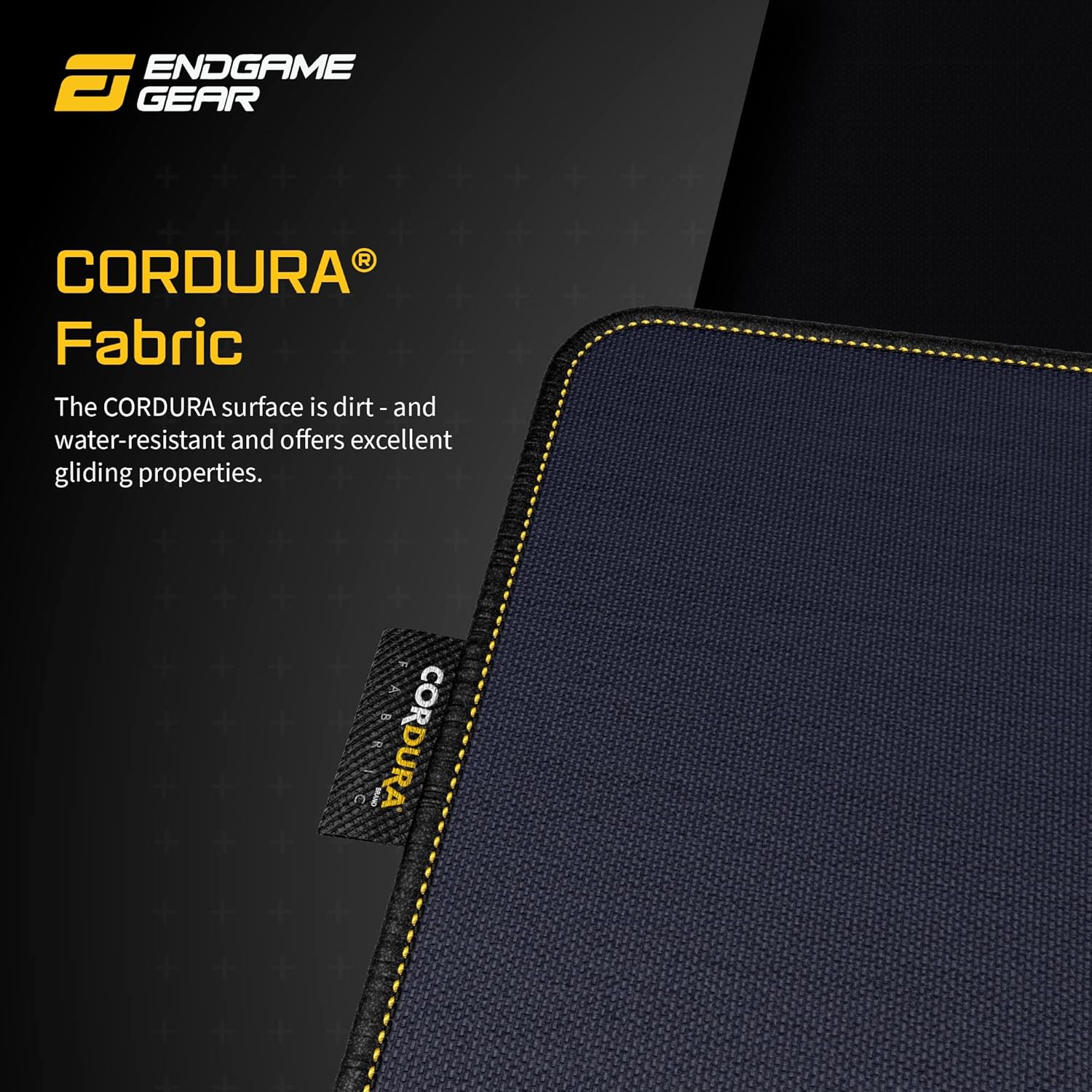 • ✔️ КЛАСИЧЕСКИ ДИЗАЙН - Повърхността на Endgame Gear MPC е тъмносиня и е с логото на производителя в горния десен ъгъл. Жълт декоративен шев по черните външни ръбове служи като декоративен елемент, а пришитият етикет идентифицира тази висококачествена подложка за мишка като автентичен продукт от Cordura.
