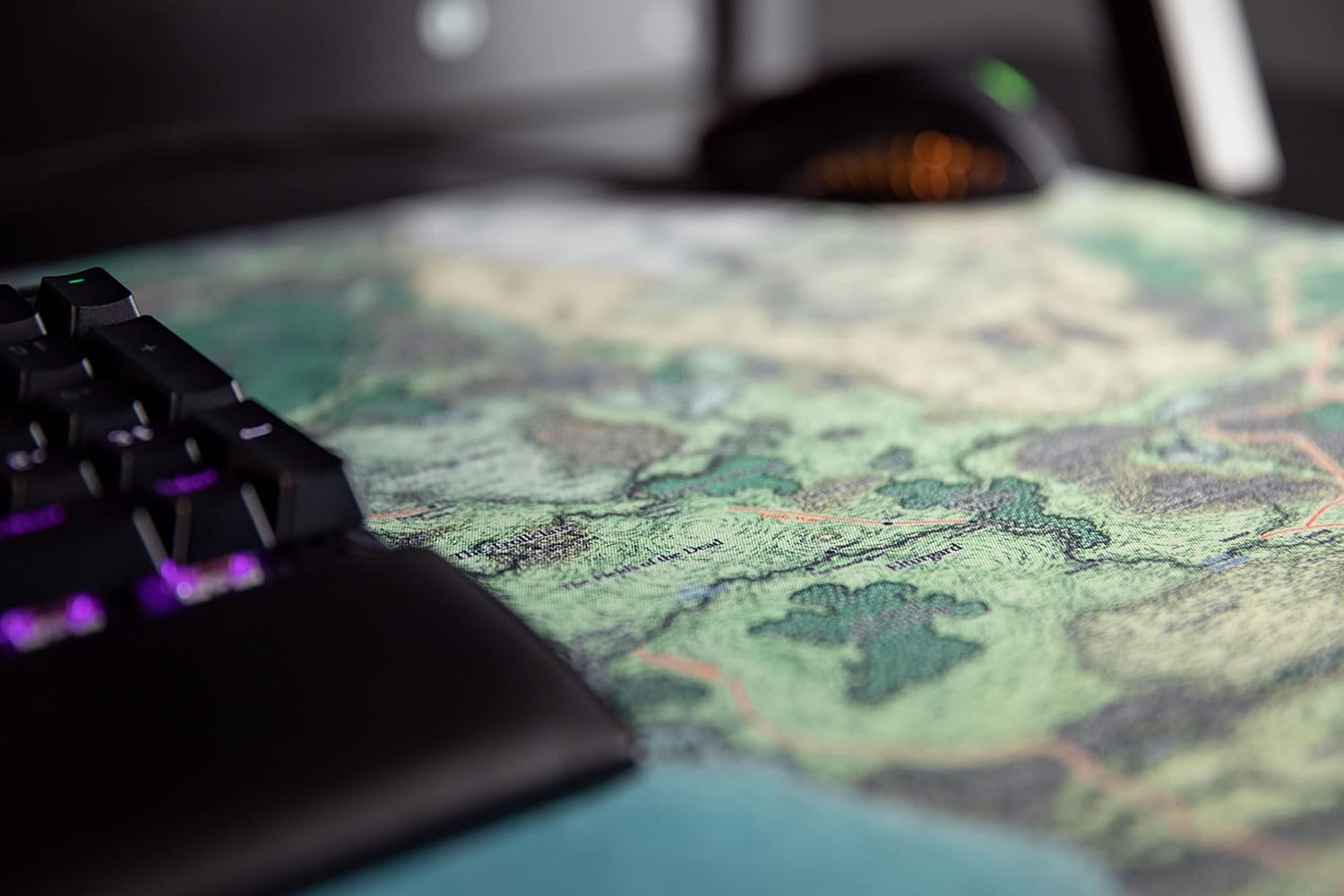 Оптимизирана за играта: в допълнение към гумената си подложка, която увеличава максимално сцеплението с бюрото, микрофибърната повърхност позволява прецизен контрол на мишката. Здрава и издръжлива: лазерно изрязаните гладки ръбове и сплетените контури запазват подложката за мишка непокътната по време на игри. Здрава: устойчивостта и защитното покритие осигуряват допълнителна издръжливост и намаляват евентуалното износване на килима с течение на времето. [ФОРМАТ ЗА НАСТОЛЕН БЮРО]: Повърхността 80 x 46 см предлага на мишката ви много място и пасва идеално на бюрото ви. Лесна за транспортиране: лека и гъвкава, тази подложка за мишка може да се навие за транспорт, когато сте в движение.