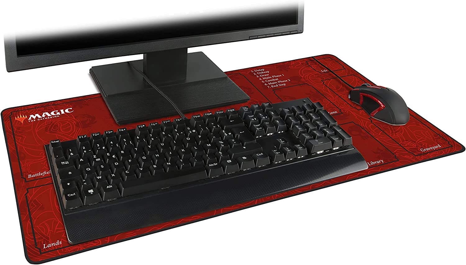 Оптимизирана за играта: в допълнение към гумената си подложка, която увеличава максимално сцеплението с бюрото, микрофибърната повърхност позволява прецизен контрол на мишката. Здрава и издръжлива: лазерно изрязаните гладки ръбове и сплетените контури запазват подложката за мишка непокътната по време на игри. Здрава: устойчивостта и защитното покритие осигуряват допълнителна издръжливост и намаляват евентуалното износване на килима с течение на времето. [ФОРМАТ ЗА НАСТОЛЕН БЮРО]: Повърхността 80 x 46 см предлага на мишката ви много място и пасва идеално на бюрото ви. Лесна за транспортиране: лека и гъвкава, тази подложка за мишка може да се навие за транспорт, когато сте в движение.