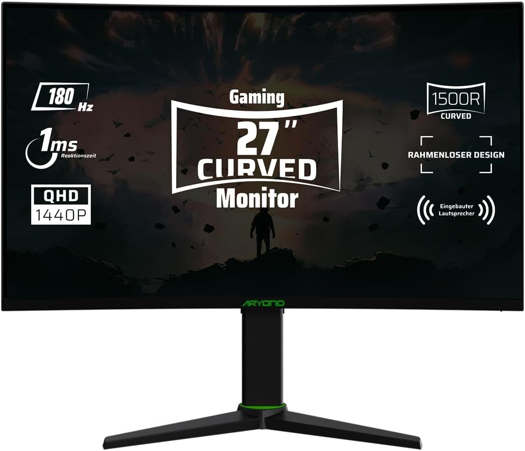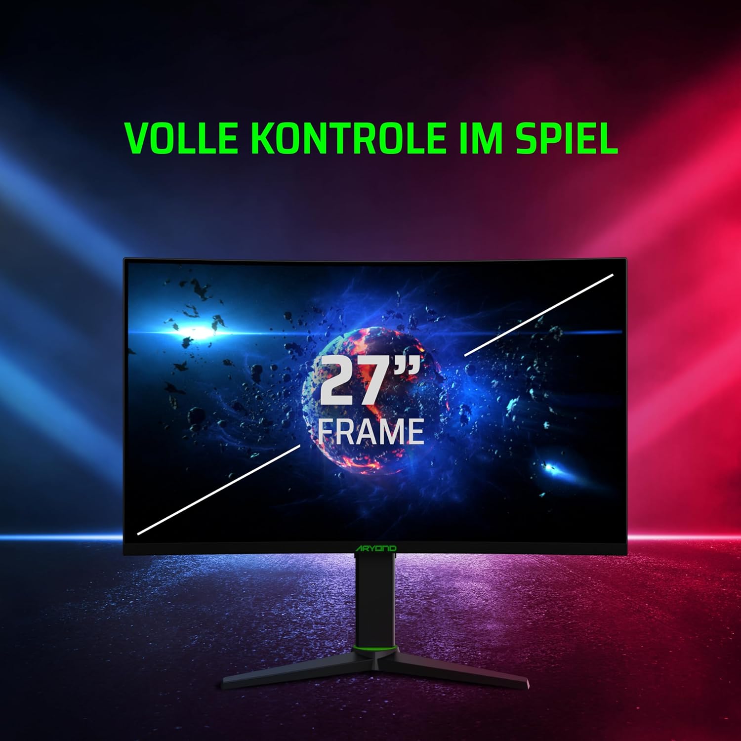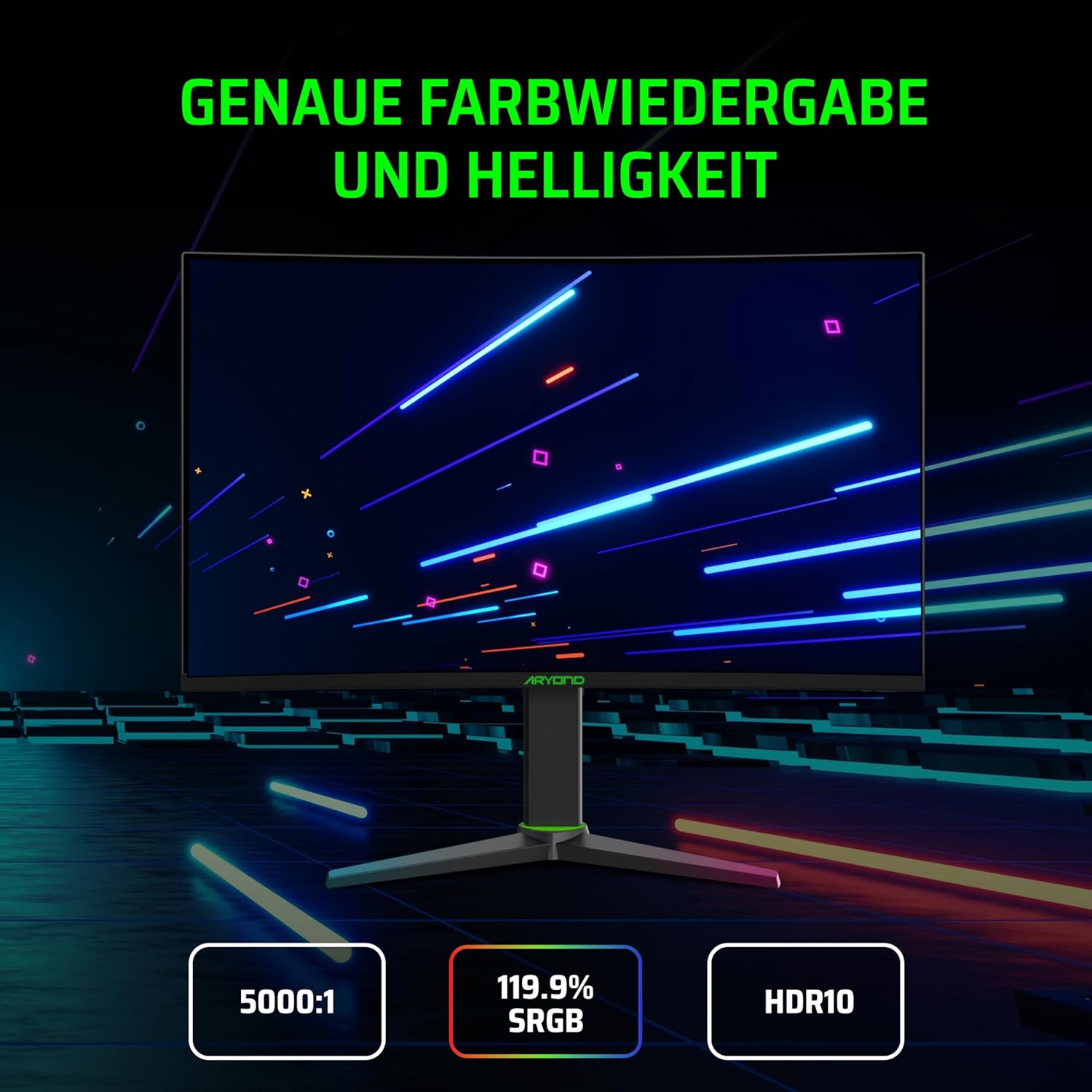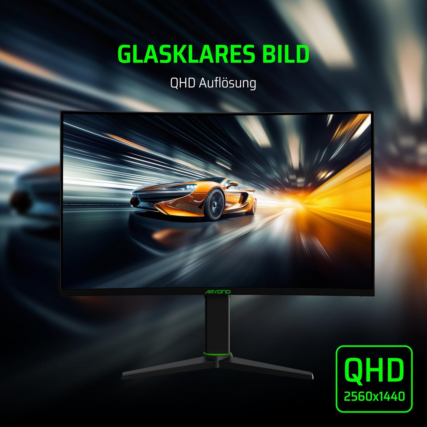 Геймърски извит монитор Aryond A27 V2, 27-инчов извит QHD (2560 x 1440) дисплей, време за реакция 1ms, HDR 10 Ratio FreeSync и G-Sync 119.9% ​​​​SRGB, компютърен екран, HDMI връзка