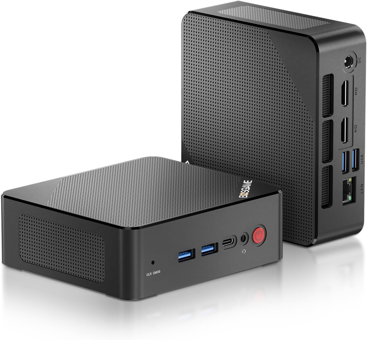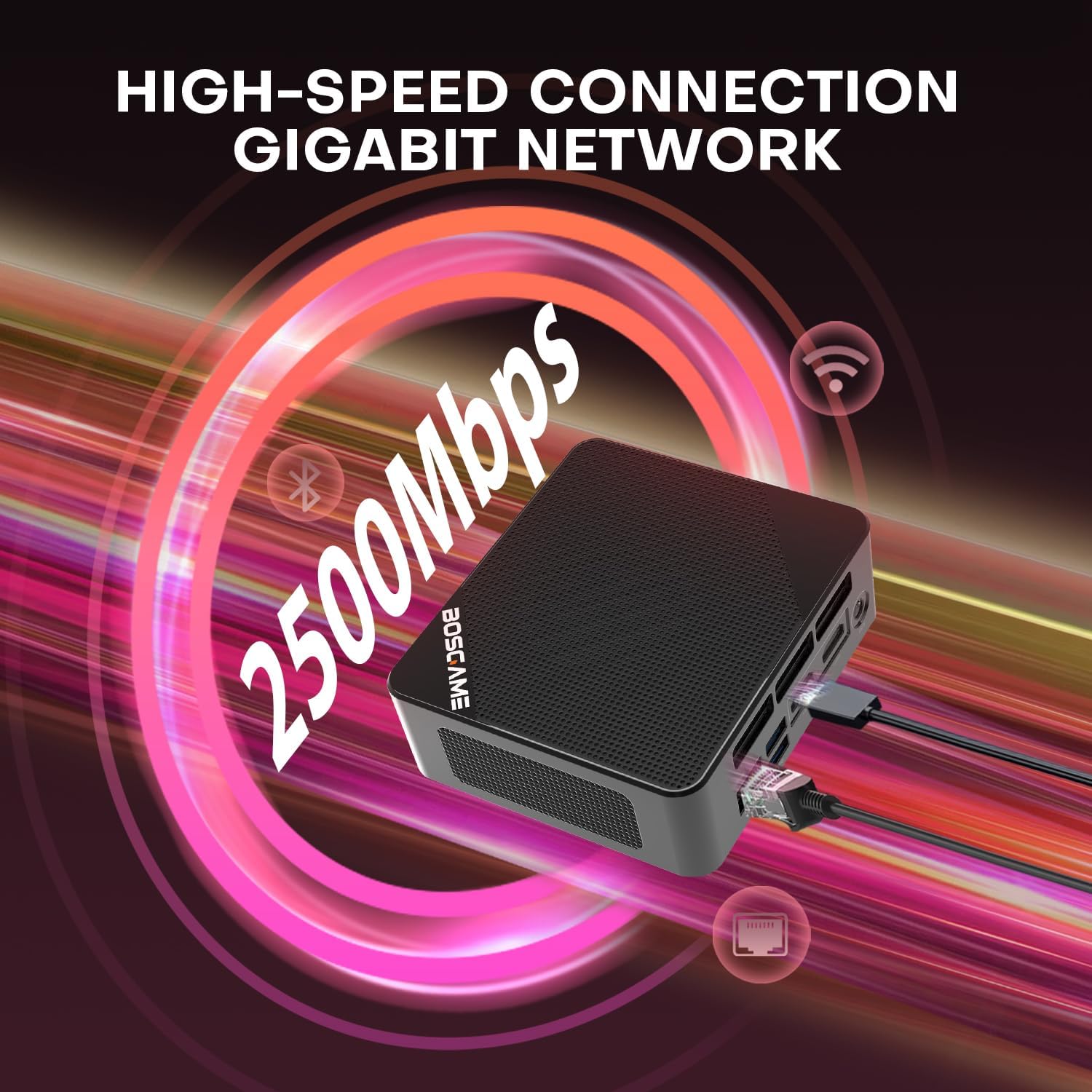 Геймърски компютър BOSGAME P1 с Windows 11 Pro, лек, AMD Ryzen 7 5700U, 8C/16T до 4.3GHz, DDR4 RAM PCIe 3.0 SSD, 4K@60Hz троен дисплей, HDMI, USB-C, USB 3.2, 2.5G LAN, Wi-Fi 6E, BT 5.2 (P1/5700U/32G/1T)