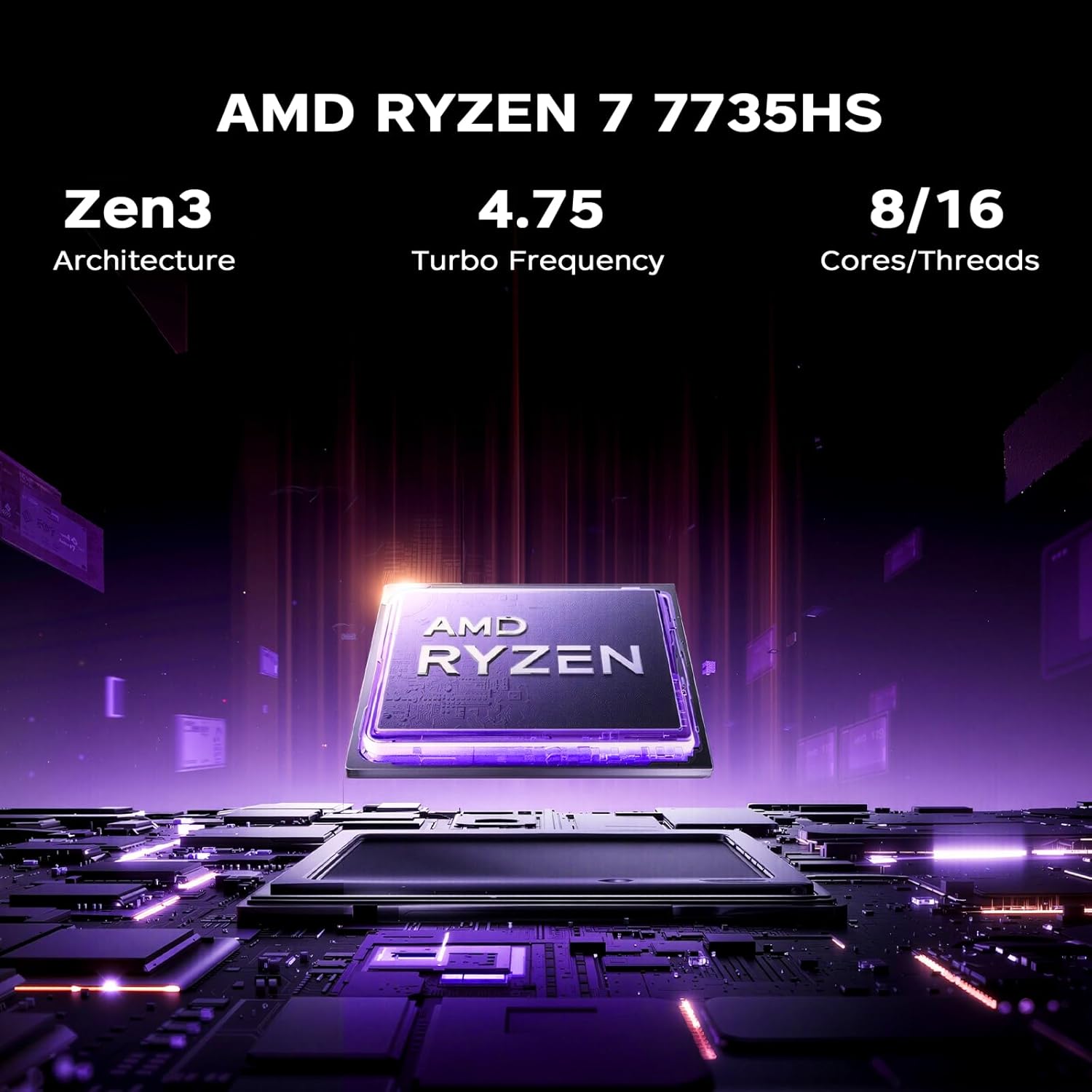 Геймърски лаптоп Tivique Ryzen 7 7735HS, до 4.8 GHz, 16 GB Ram DDR5 4800 MHz 512 GB SSD, 16-инчов FHD дисплей, геймърски лаптоп с осветена клавиатура, WiFi 6, метален корпус