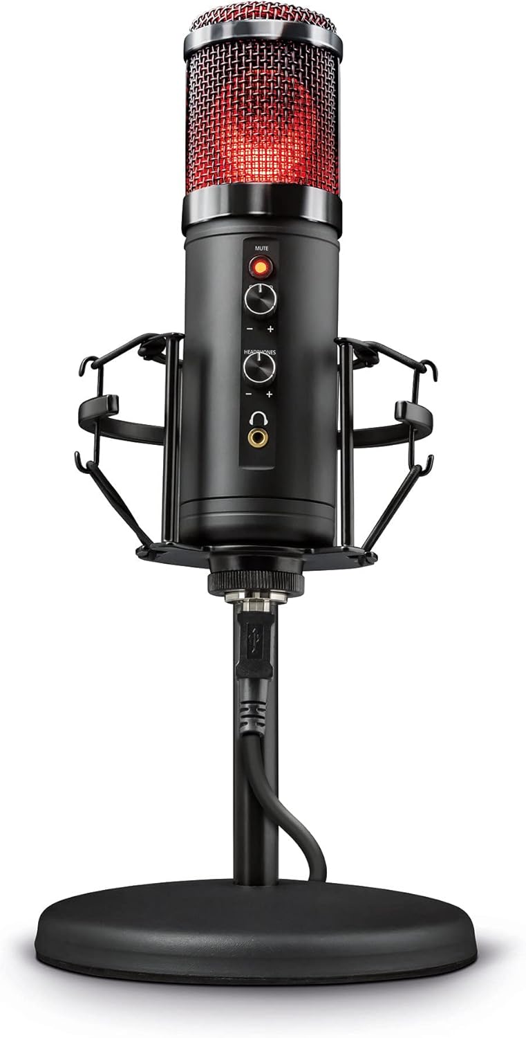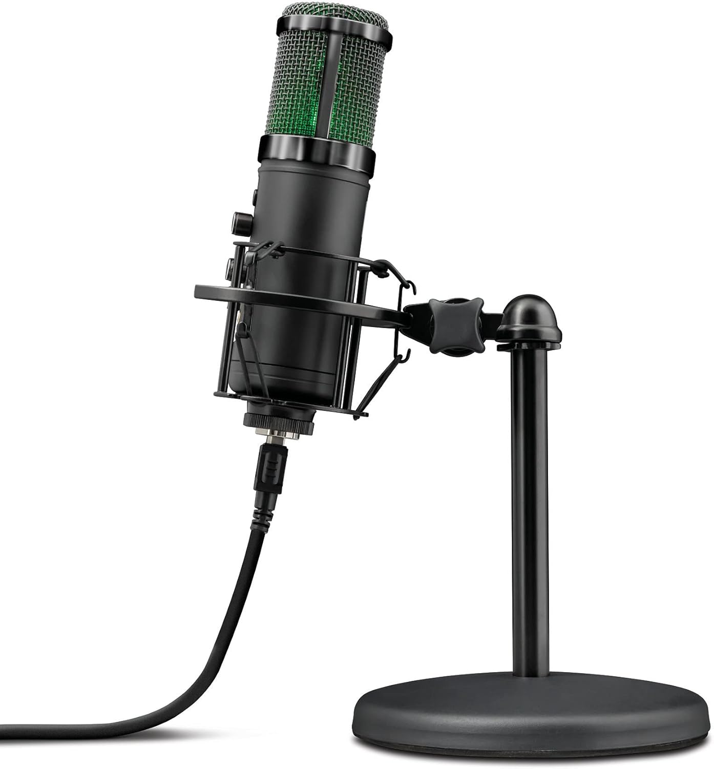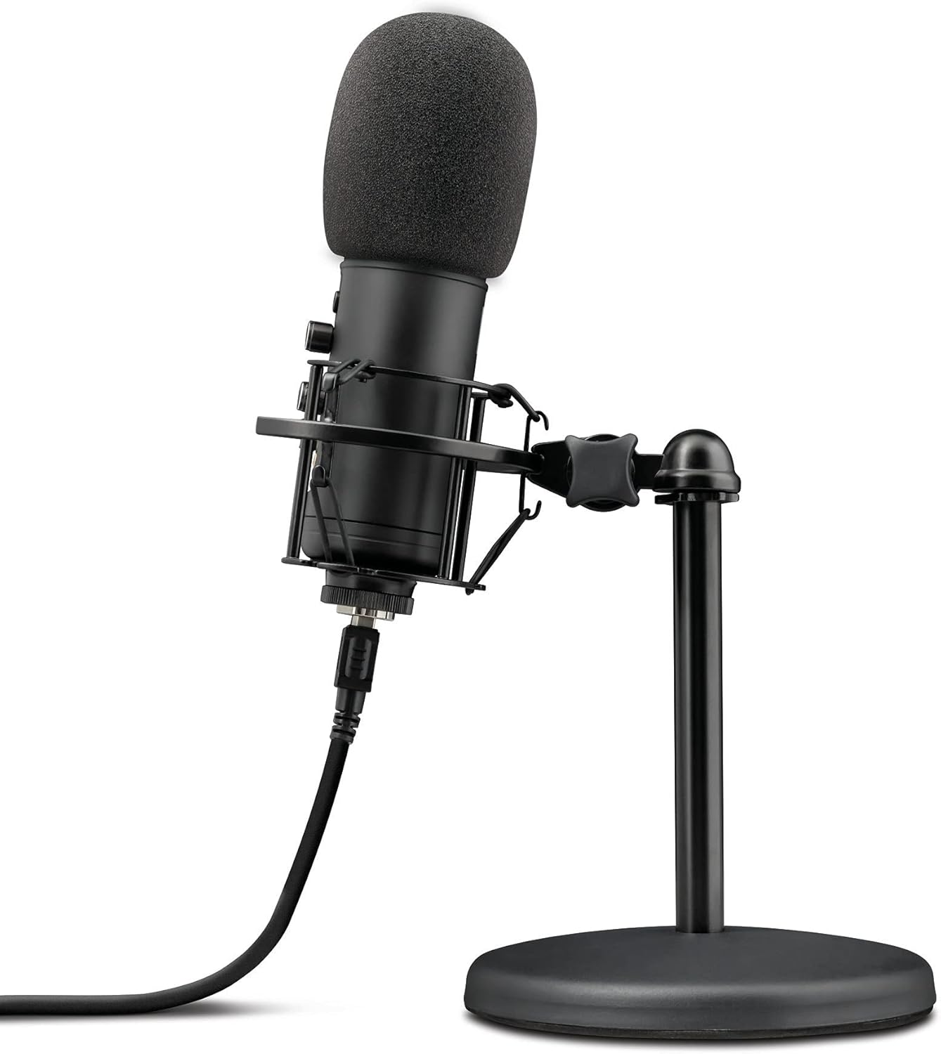 • Професионални функции: За да усъвършенствате записите си, използвайте професионалните функции на този кондензаторен микрофон: порт за слушалки без латентност (слушайте записа в реално време), усилвател на микрофона, бутон за изключване на звука, контрол на силата на звука на слушалките и вътрешен поп филтър, който блокира нежелания шум.