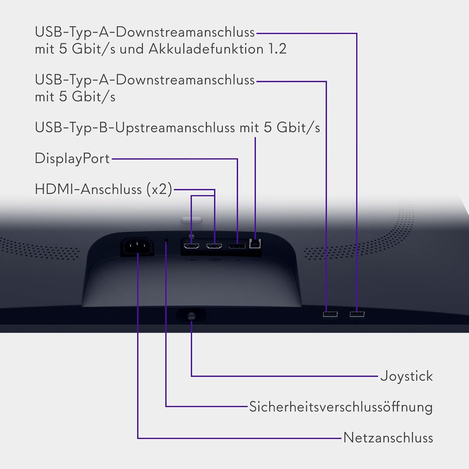 • ЕРГОНОМИЧНОСТ И СВЪРЗАНОСТ ЗА ГЕЙМЪРИ: Регулируема височина, накланяне, завъртане (110 мм), HDMI 2.1, DisplayPort 1.4, USB-C с 15 W, USB-A/B. Джойстик за екранно меню. Включва HDMI, DP и USB кабел.