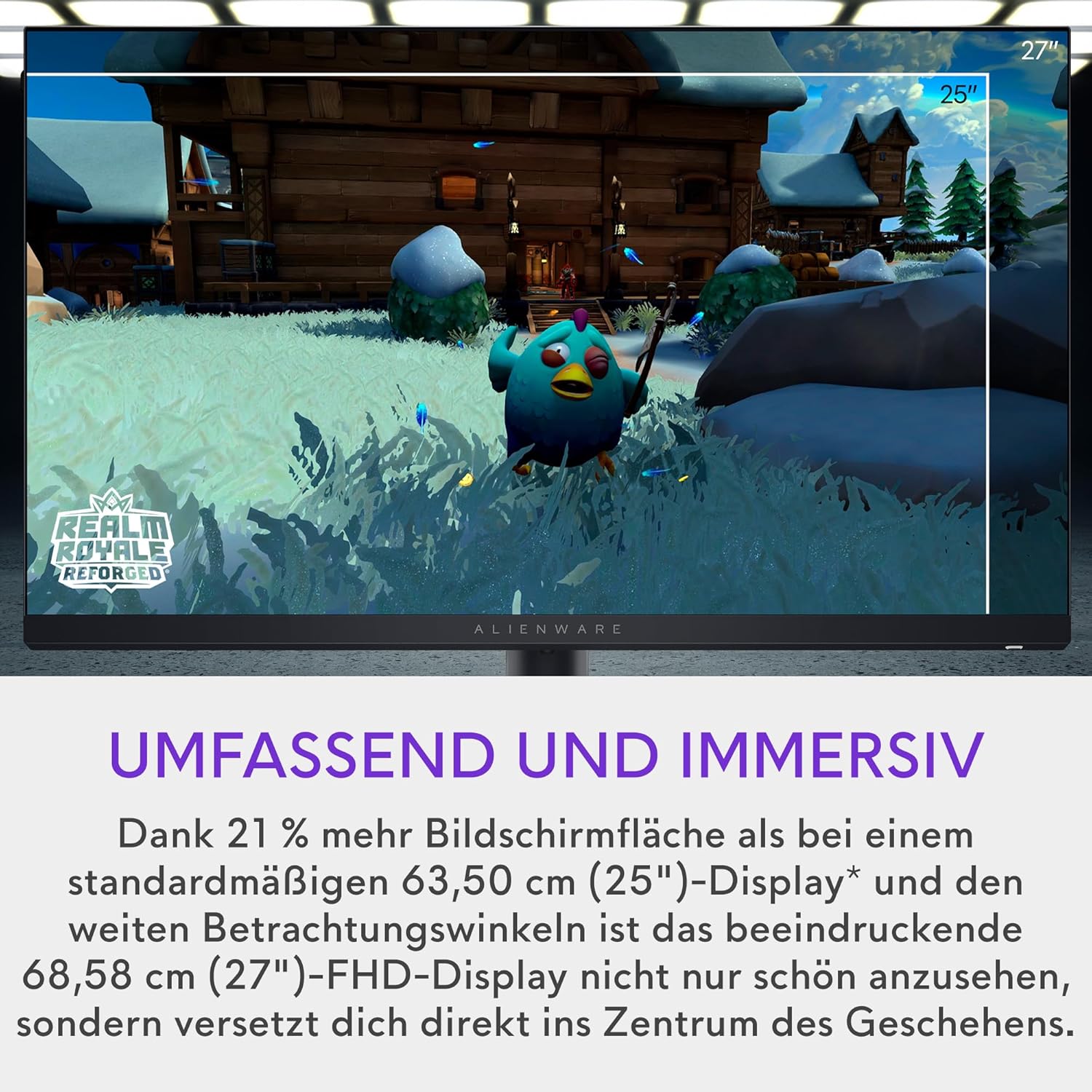 Геймърски монитор Alienware, AW2724HF, 27-инчов Full HD (1920 x 1080), 360Hz, бърза IPS матрица, 0.5 ms, AMD FreeSync Premium, VESA AdaptiveSync, 99% sRGB, HDR 10, 2 x DisplayPort, HDMI, 5 x USB