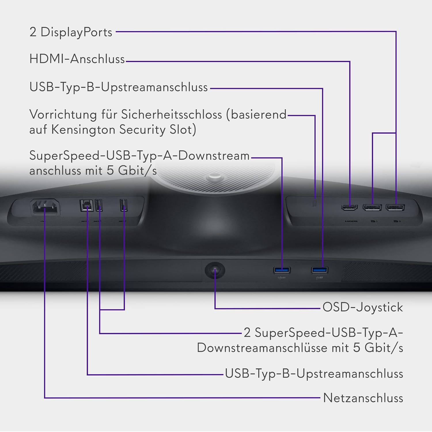• ЕРГОНОМИЧНОСТ И СВЪРЗАНОСТ ЗА ГЕЙМЪРИ: Регулируема височина, накланяне, завъртане (110 мм), HDMI 2.1, DisplayPort 1.4, USB-C с 15 W, USB-A/B. Джойстик за екранно меню. Включва HDMI, DP и USB кабел.