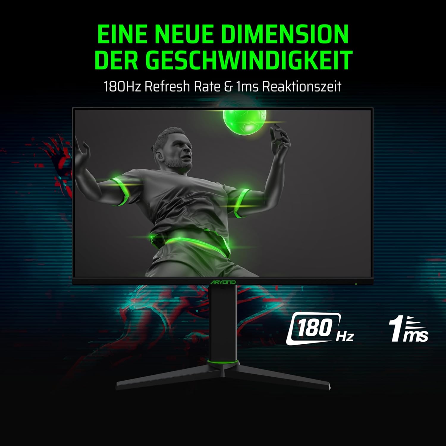 Геймърски монитор Aryond A24 V2, 24-инчов 180Hz FHD (1920 x 1080) дисплей, време за реакция 1ms, HDR 10 Ratio FreeSync и G-Sync