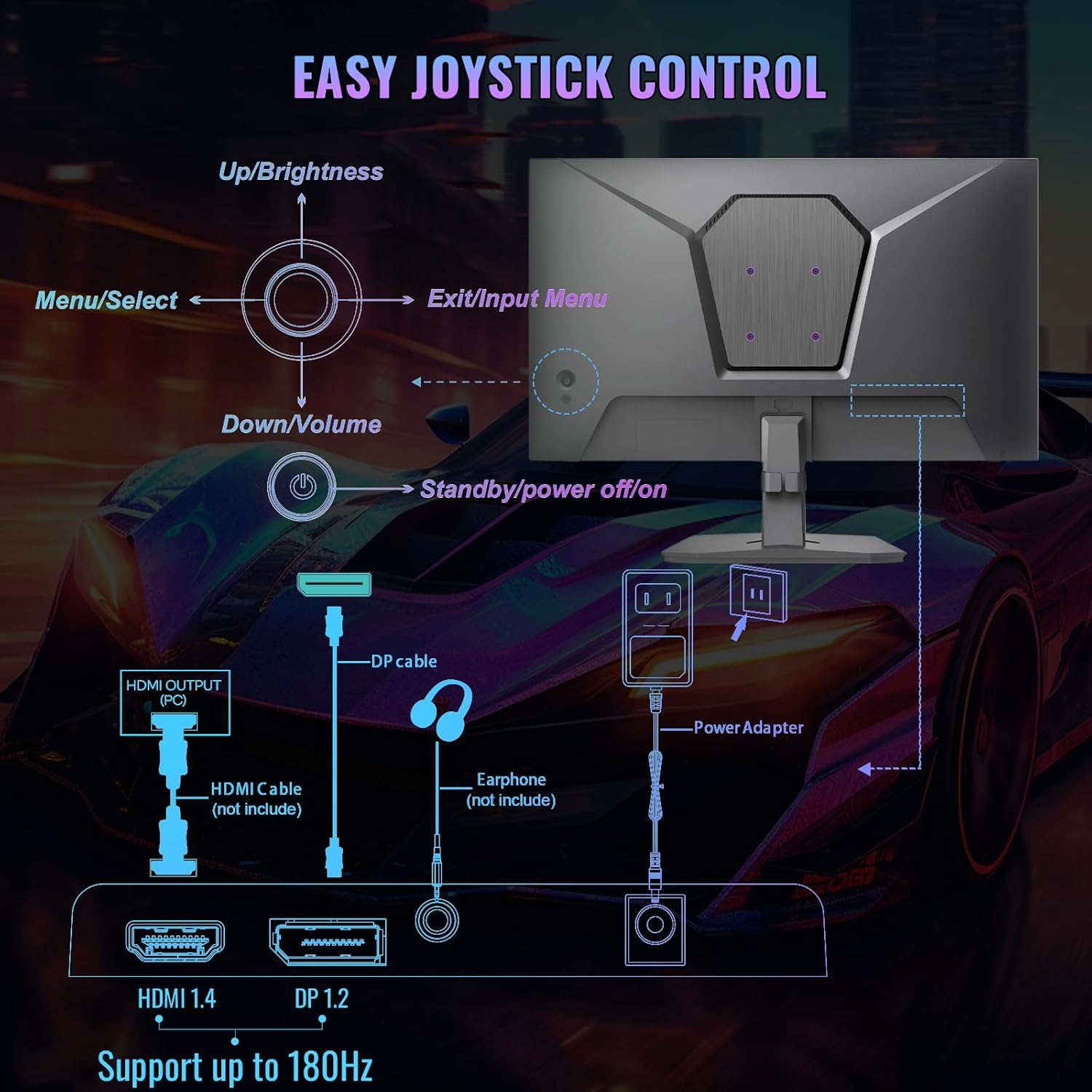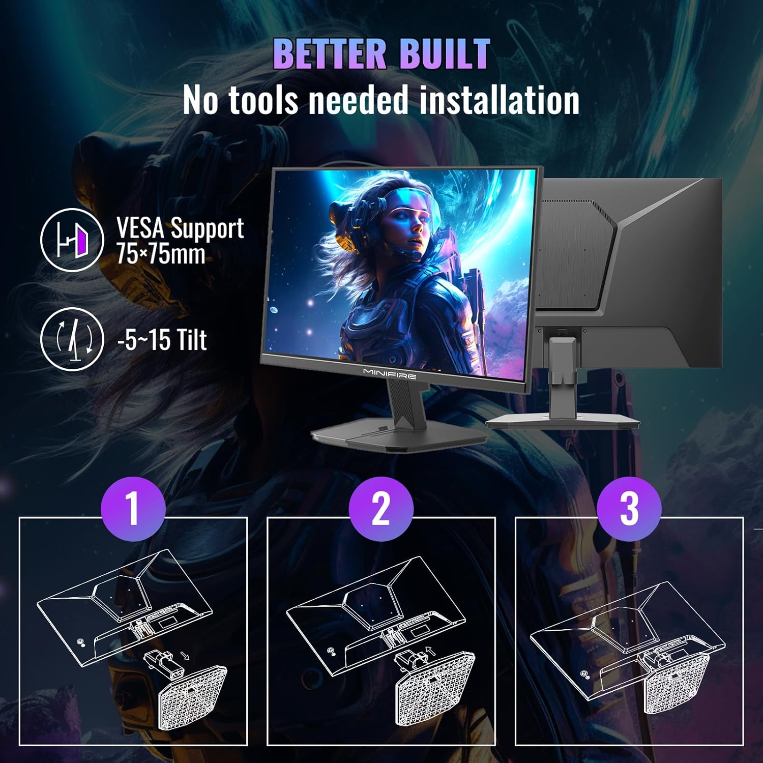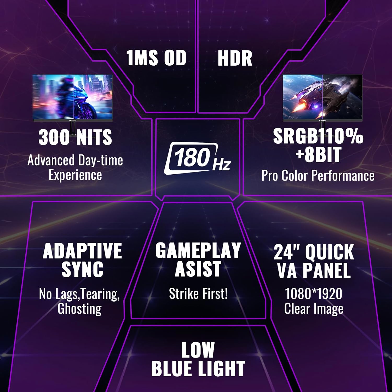 Геймърски монитор Minifire 24 инча, 180 Hz, 1 ms, AdaptiveSync, IPS, 2 x HDMI 2.0/1 x DP 1.4 порта, FHD, sRGB 110%, екран за компютър (HDMI кабел MFG24F4 е включен)