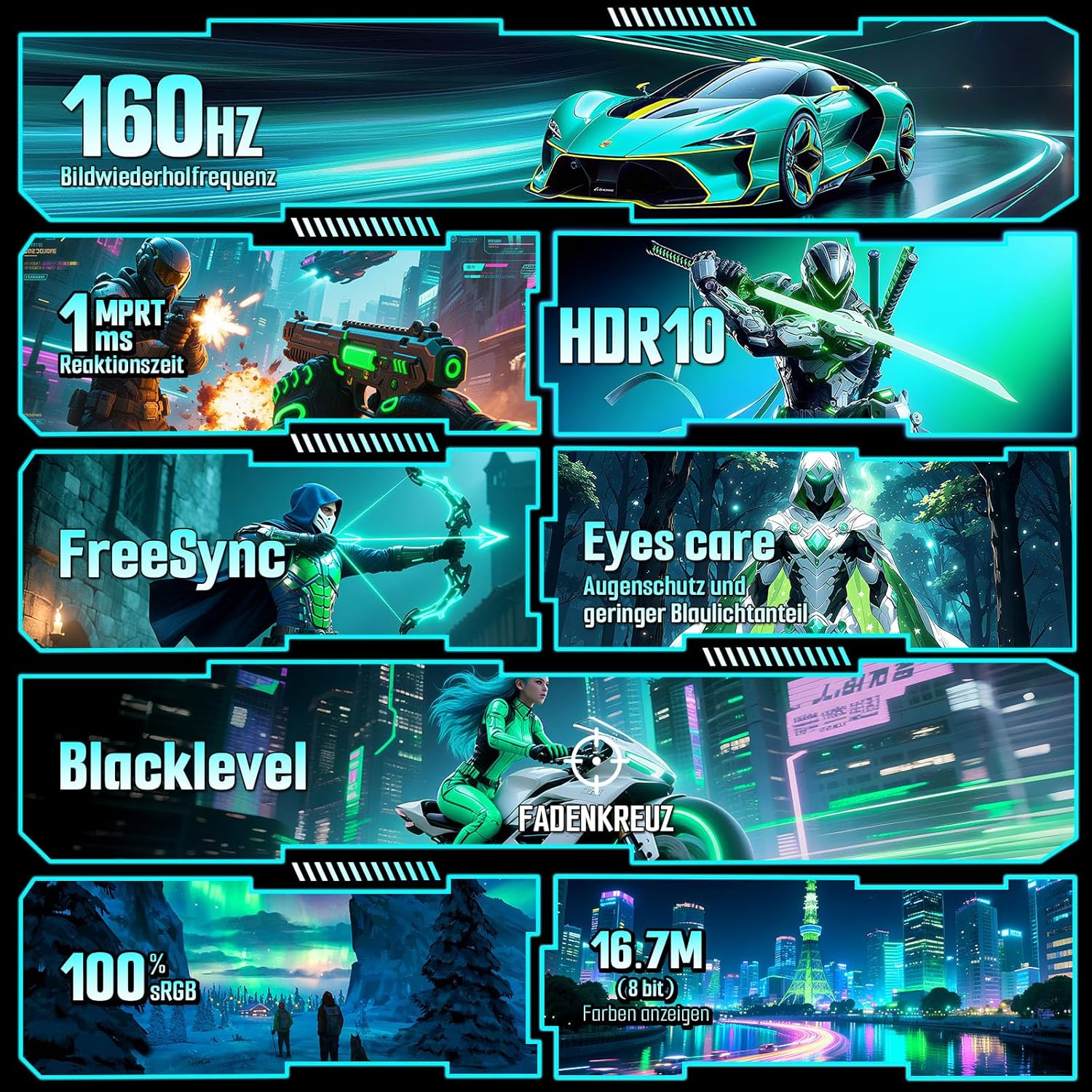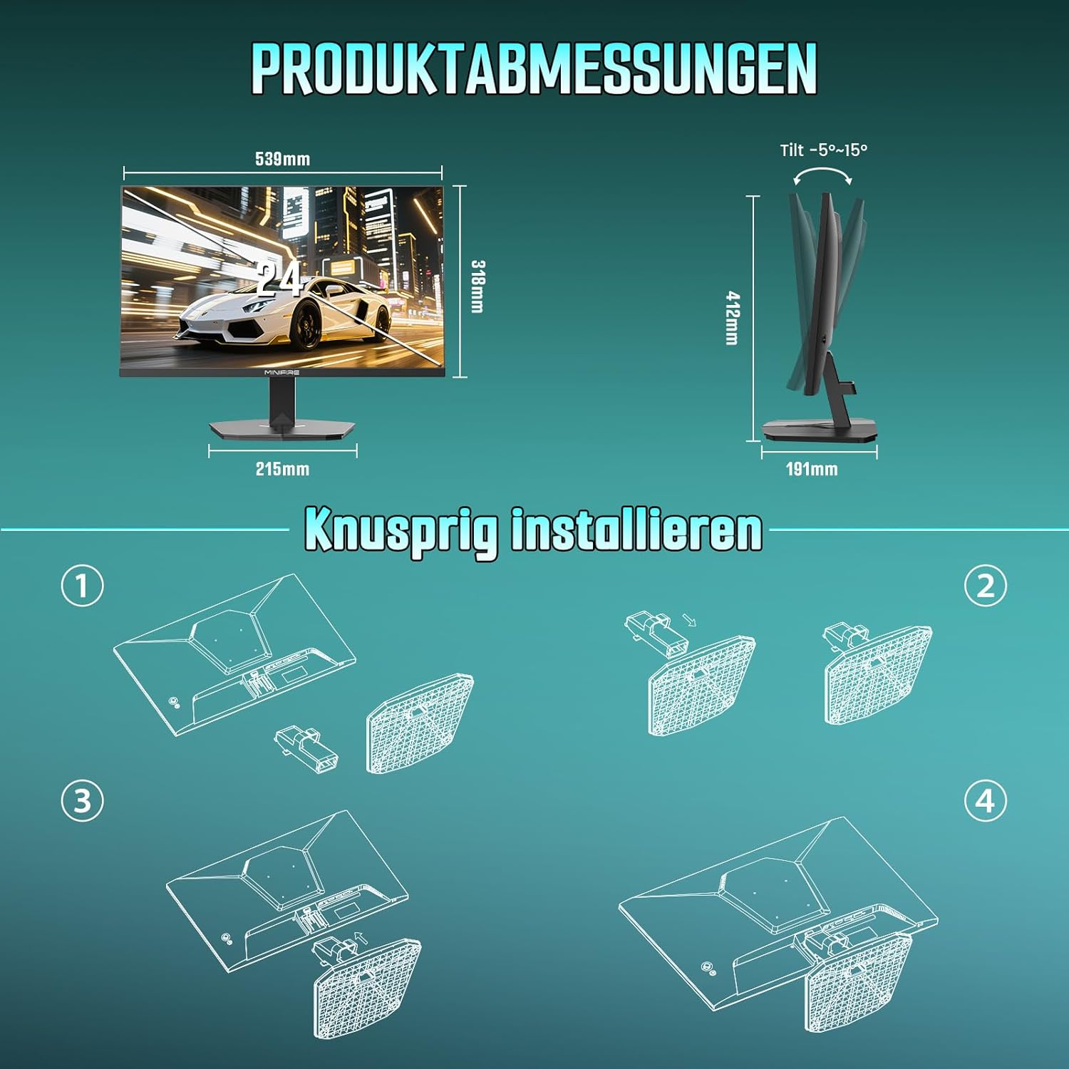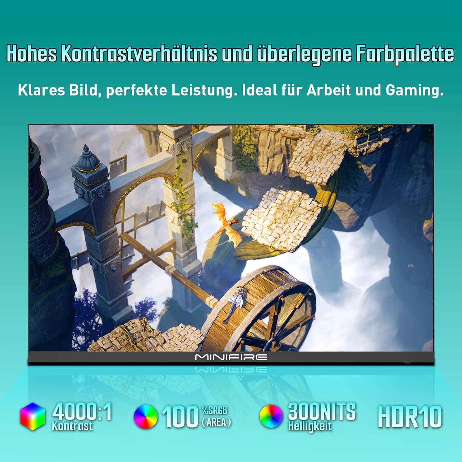 Геймърски монитор Minifire 24-инчов, 160 Hz, 1 ms, FreeSync, Full HD (1920 x 1080), безрамков екран, регулируем, 300 нита, sRGB 110%, HDMI 2.0 и DP 1.4 - (HDMI кабел MFG24F4M е включен)