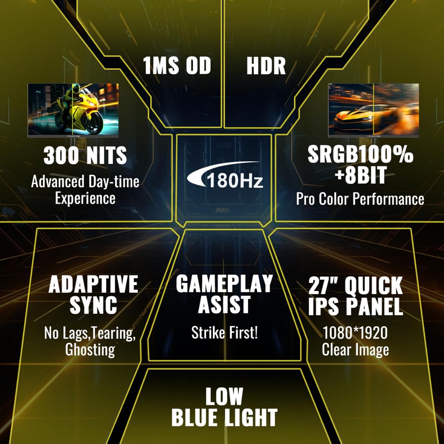 • 27-инчов 165 Hz бърз IPS геймърски монитор. Технология за адаптивна синхронизация.