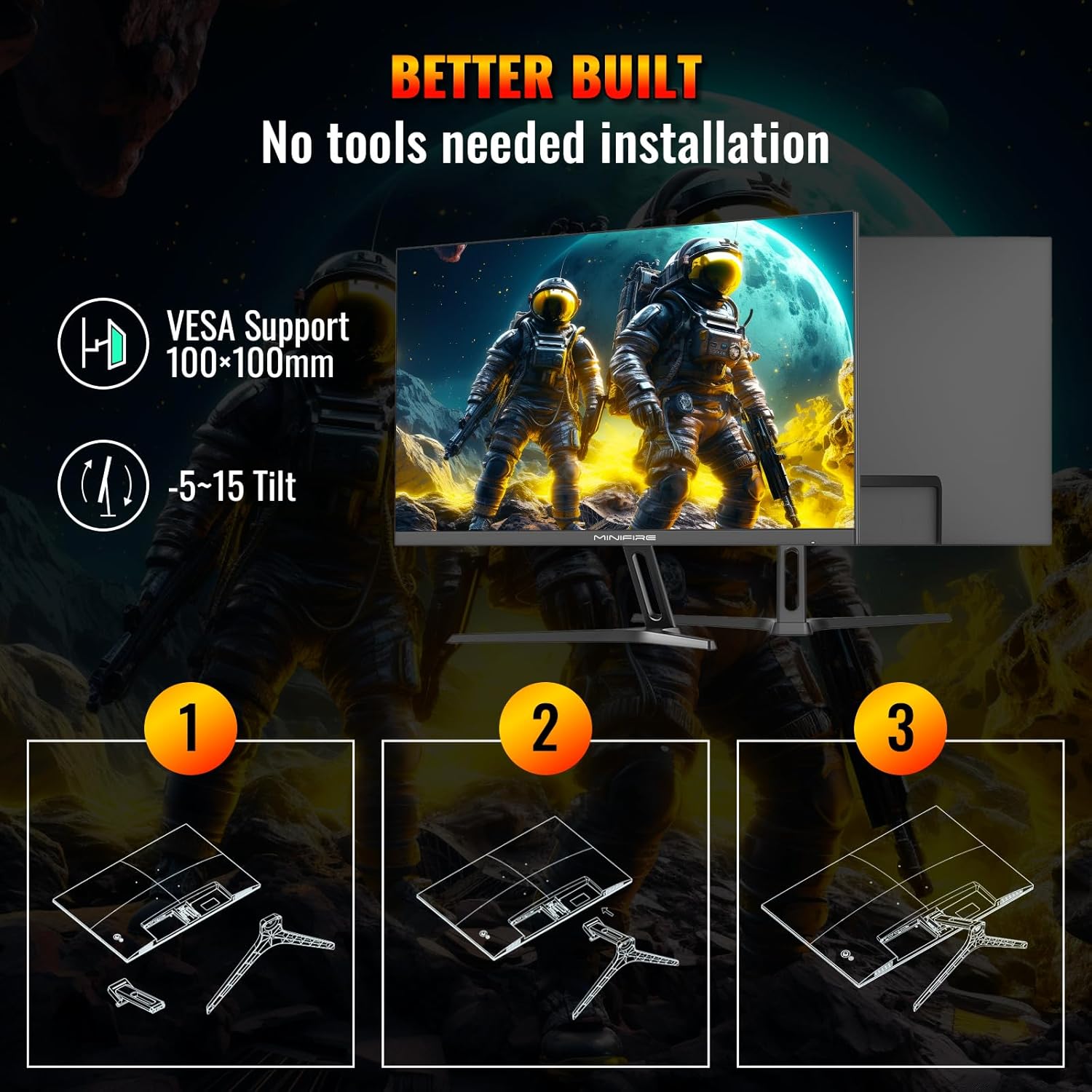 Геймърски монитор Minifire 27 инча, 165 Hz, 1 ms, AdaptiveSync, IPS, 2 x HDMI 2.0/1 x DP 1.4 порта, FHD, sRGB 110%, екран за компютър (HDMI кабел MFG27F2 е включен)
