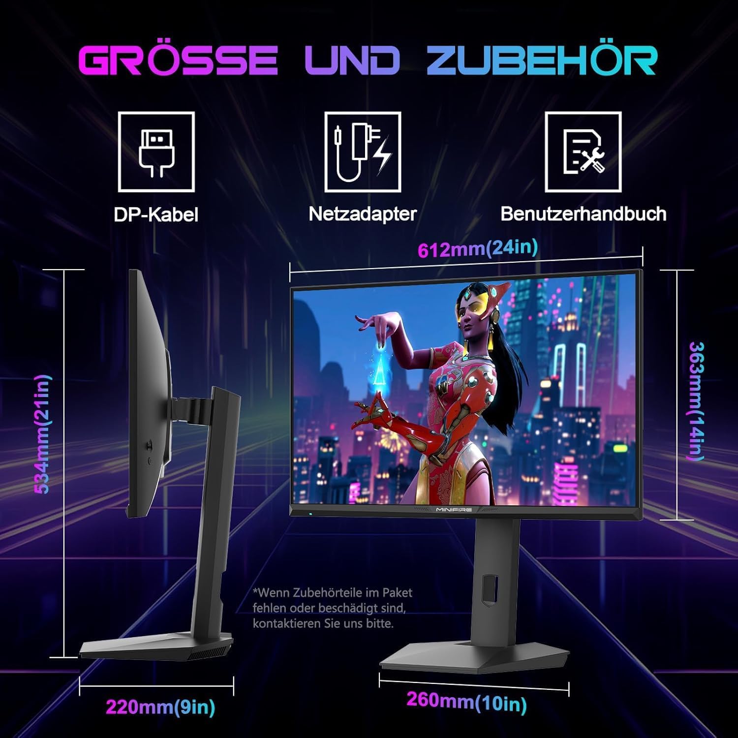 • Основни аксесоари: DP кабел (1,5 м), адаптер x 1, захранващ кабел x 1 (1 м), ръководство за потребителя (английски език не е гарантиран).