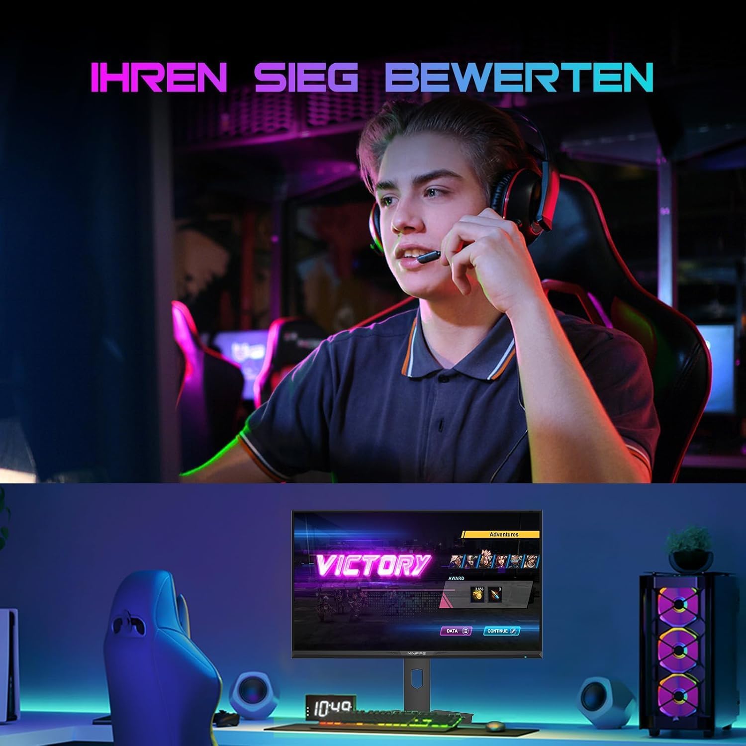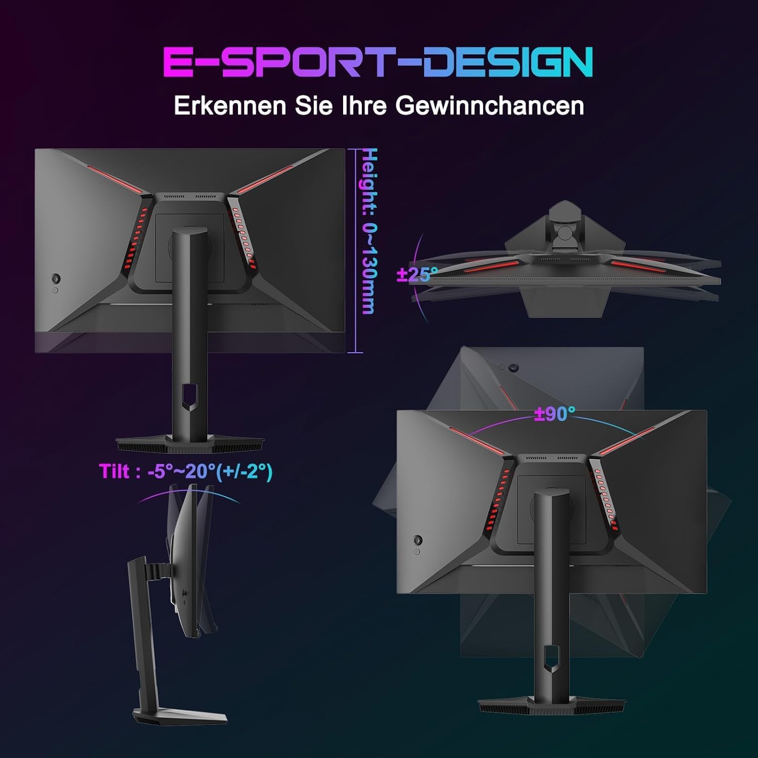Геймърски монитор Minifire 27 инча, 300 Hz, 2K QHD 1440P, регулируема височина, въртящ се вертикално/хоризонтално, OD MPRT 1ms, FreeSync, sRGB 130%, 10 bit, 2 x DP1.4, 2 x HDMI 2.1, съвместим с VESA (MFG27F6Q)