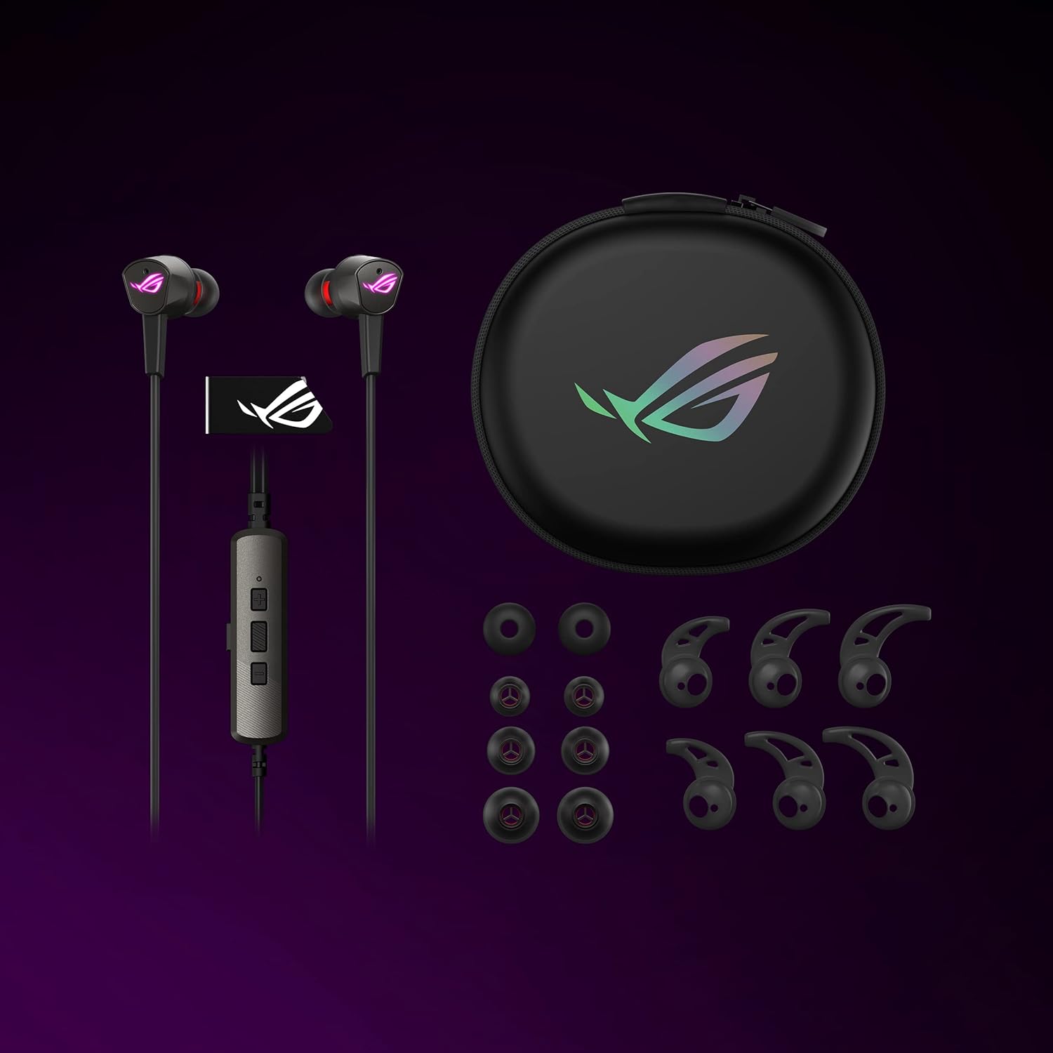 Геймърски слушалки ASUS ROG Cetra II In-Ear (ANC) - Течен силиконов каучук (LSR), USB-C, съвместими с компютри, смартфони, PlayStation 5, Xbox и Nintendo Switch