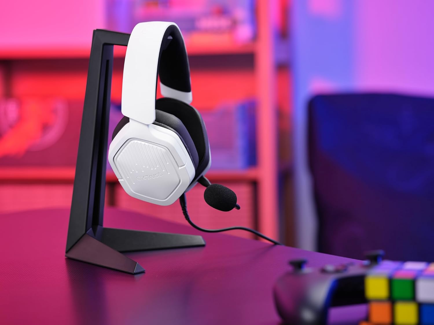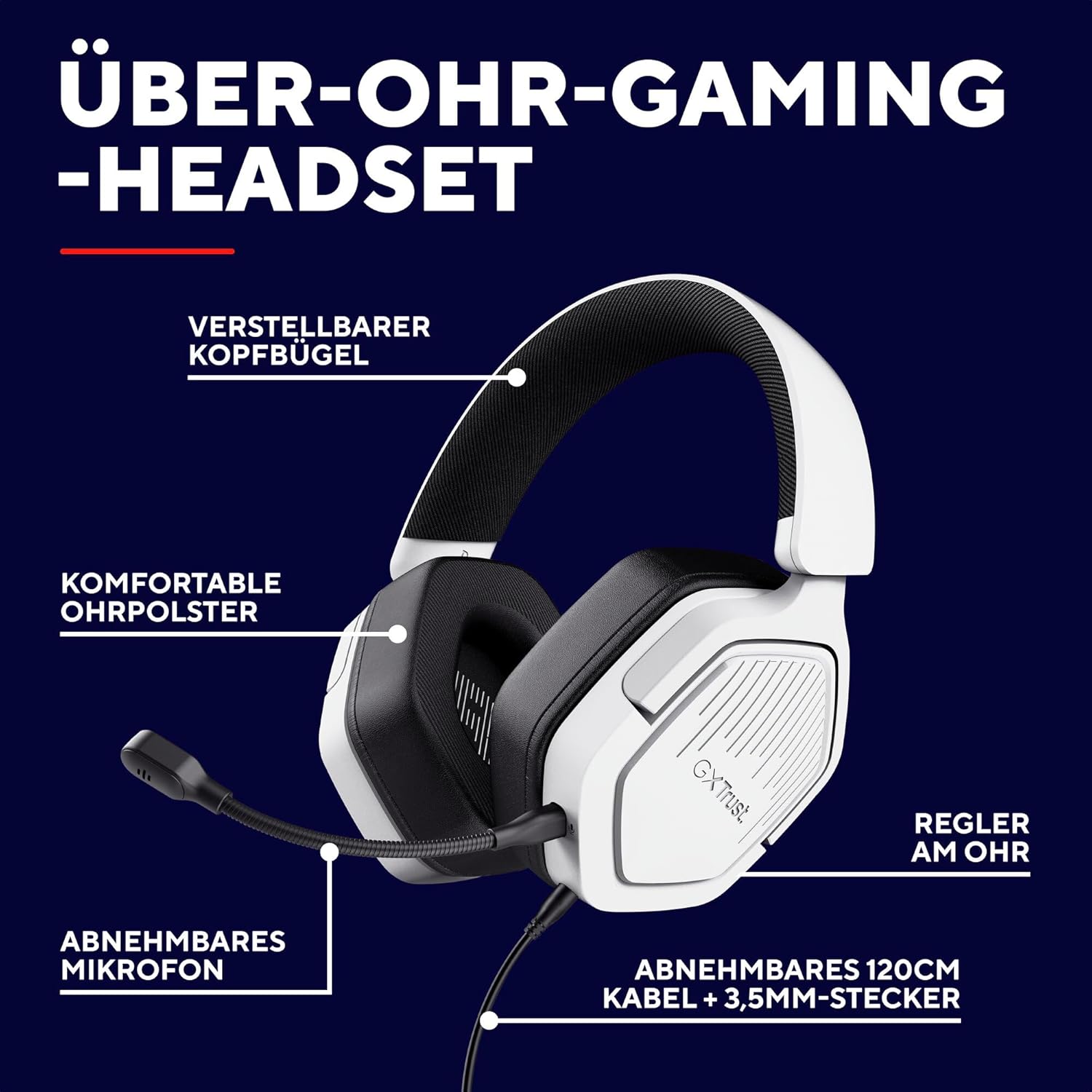 Геймърски слушалки GXTrust 1492W Ravox с микрофон за PS5 PS4 Switch PC Xbox Mobile, 3.5 мм жак, 50 мм драйвер, подплатена лента за глава, слушалки за уши с кабел, бели