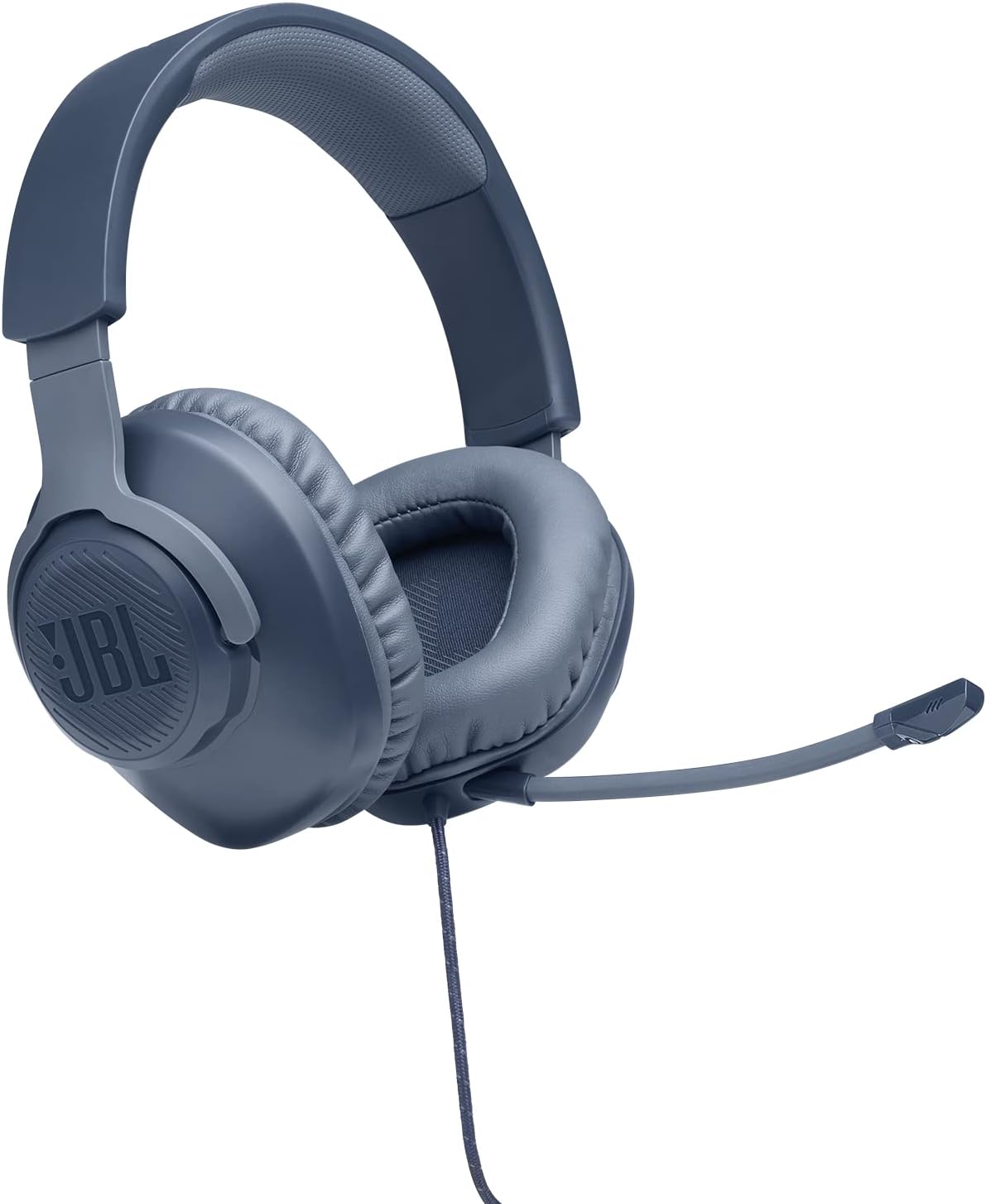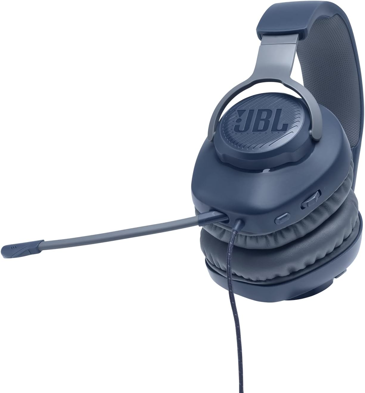 Геймърски слушалки JBL Quantum 100 с кабел 3.5 мм жак - с подвижен микрофон - съвместими с много платформи - сини