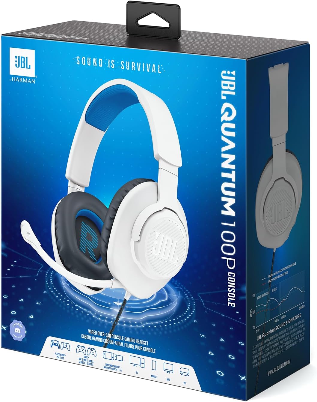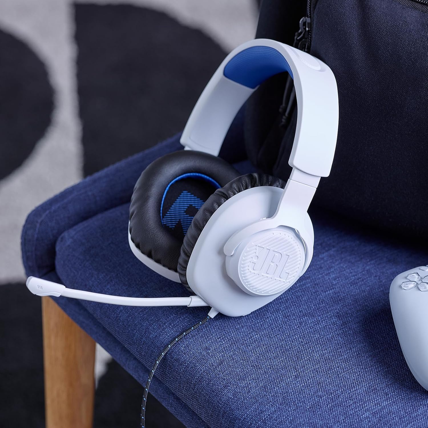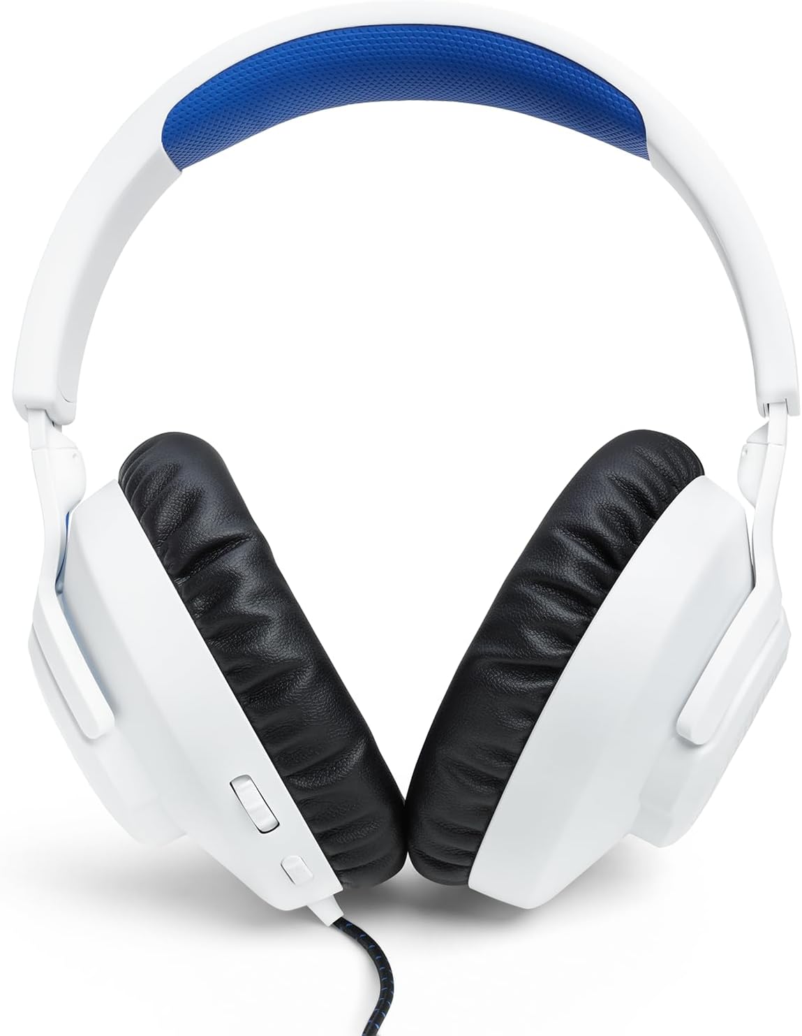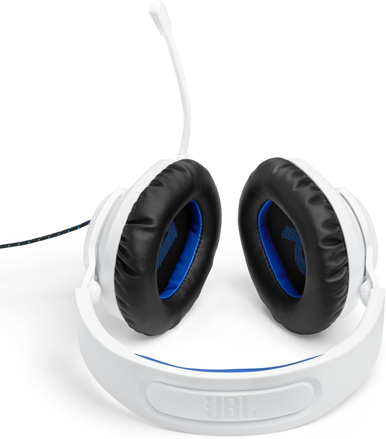 Геймърски слушалки JBL Quantum 100P с кабел 3.5 мм жак - с подвижен микрофон - съвместими с много платформи - бяло/синьо