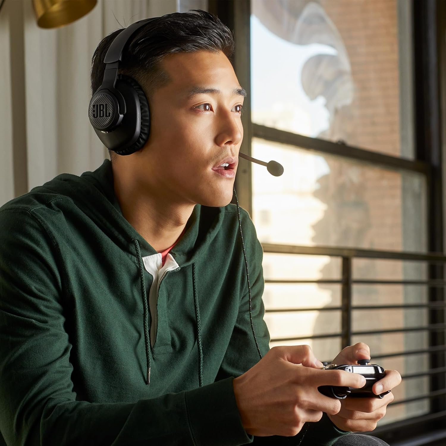 • Съдържание на кутията: 1 x Геймърски слушалки Quantum 100 в черно от JBL / мултиплатформени възможности за безпроблемна връзка / включва подвижен микрофон