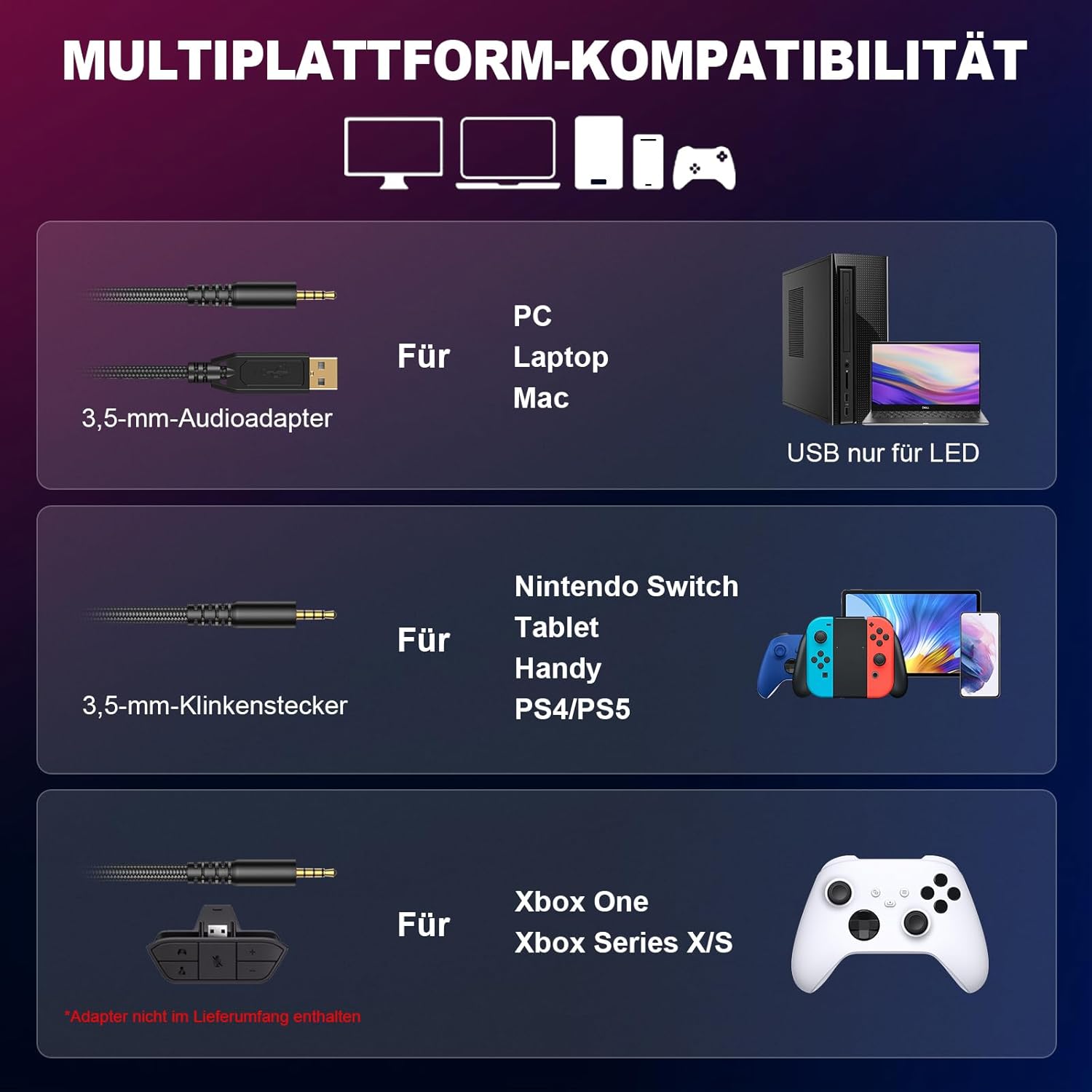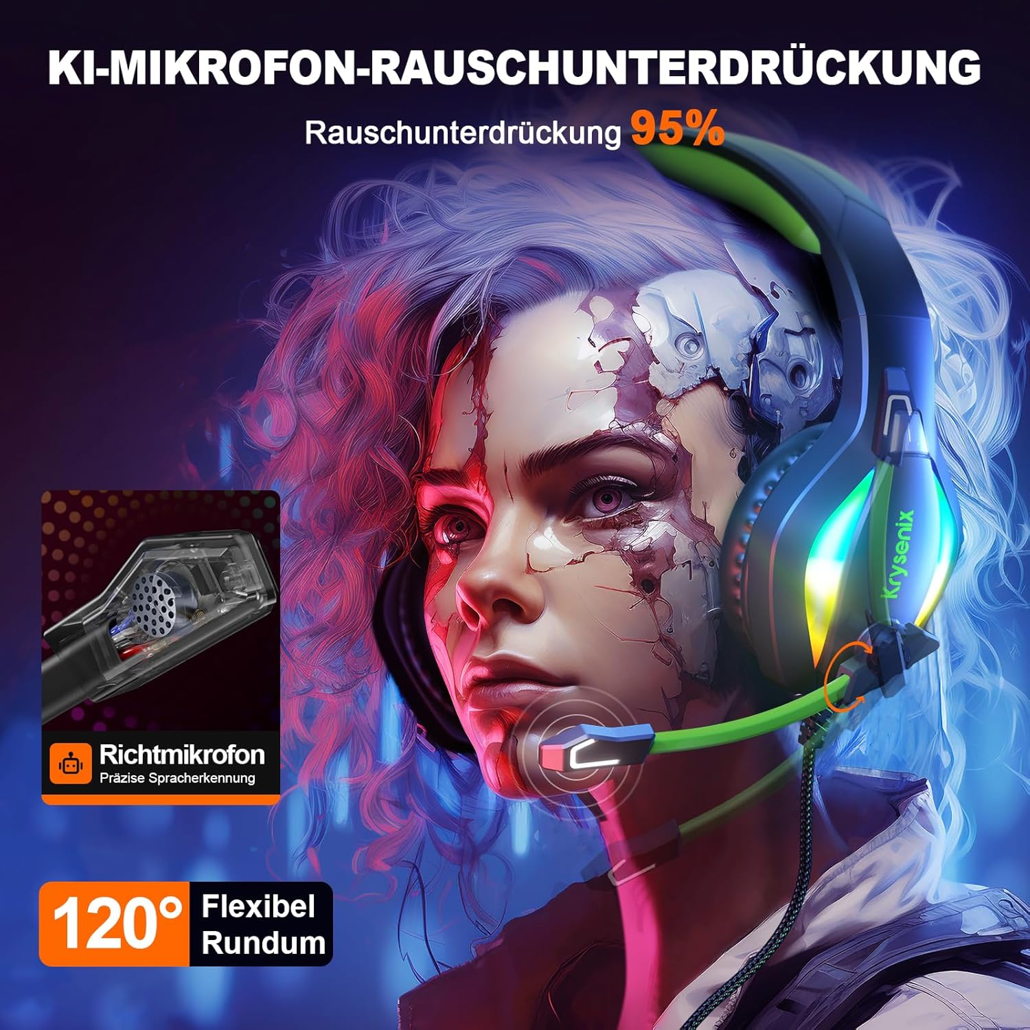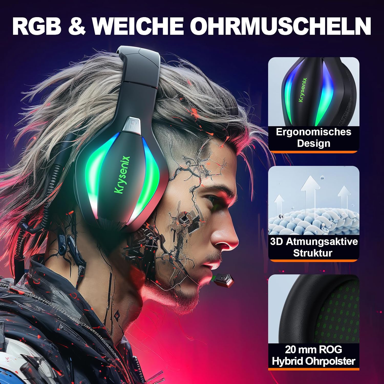• ???? ПРОФЕСИОНАЛЕН И УДОБЕН ДИЗАЙН Геймърските слушалки Krysenix съчетават елегантен дизайн с готини форми и ярки RGB светлини. Те са идеален подарък за Коледа, рождени дни и са перфектни за момчета и момичета, семейство и приятели. Забележка: RGB светлината на слушалките трябва да бъде включена в USB порта, за да се активира)