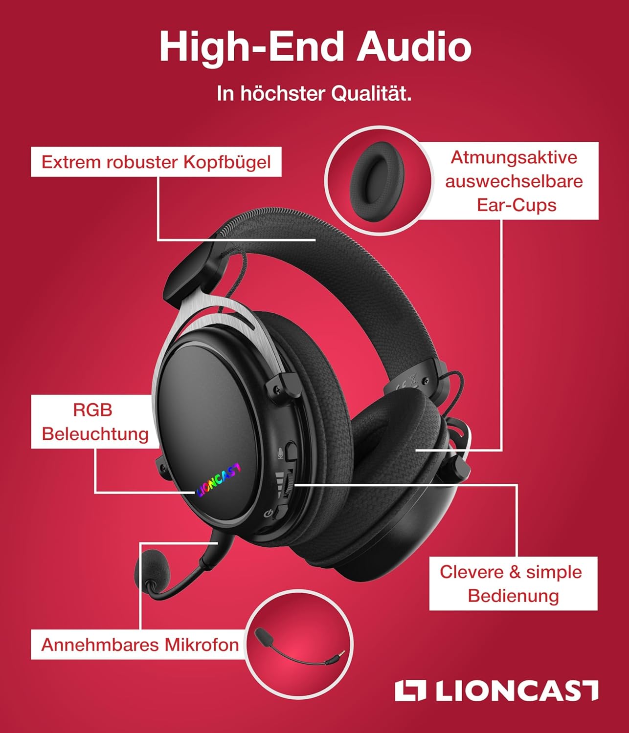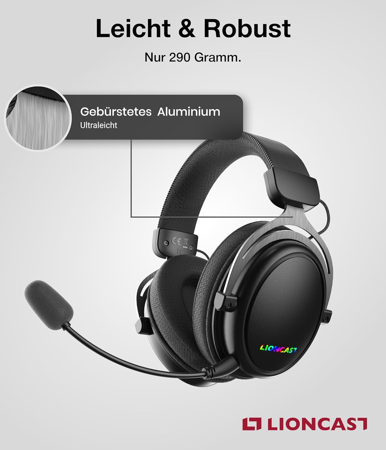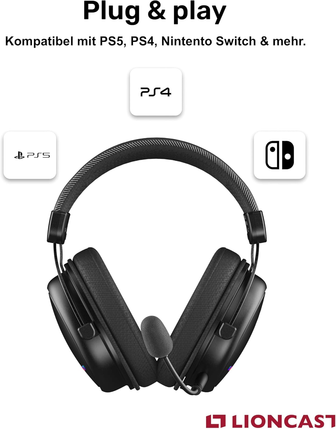 Геймърски слушалки Lioncast LX80 с безжичен микрофон [40 часа батерия] - Съвместими с PS5, Nintendo Switch, Switch 2, Xbox - Геймърски слушалки за компютър - Безжични Bluetooth слушалки