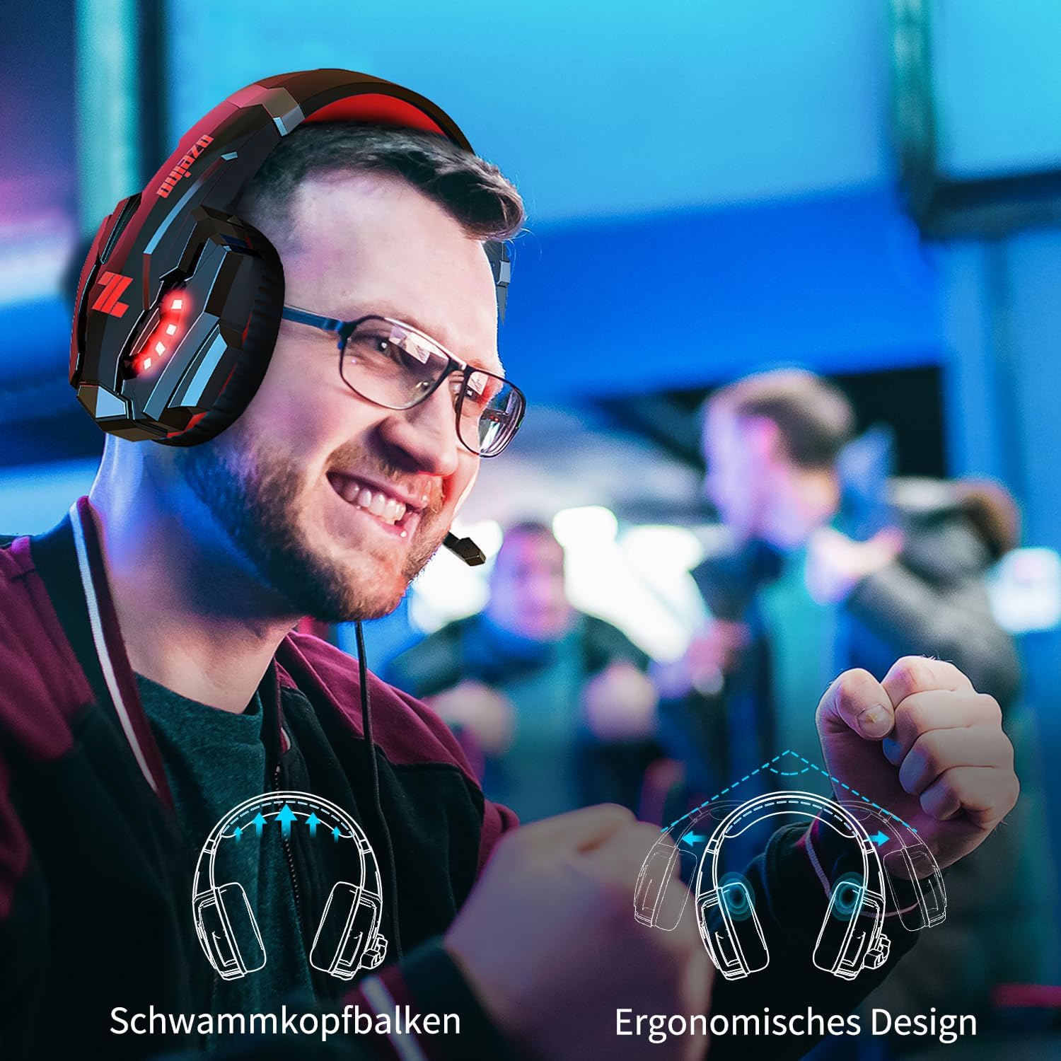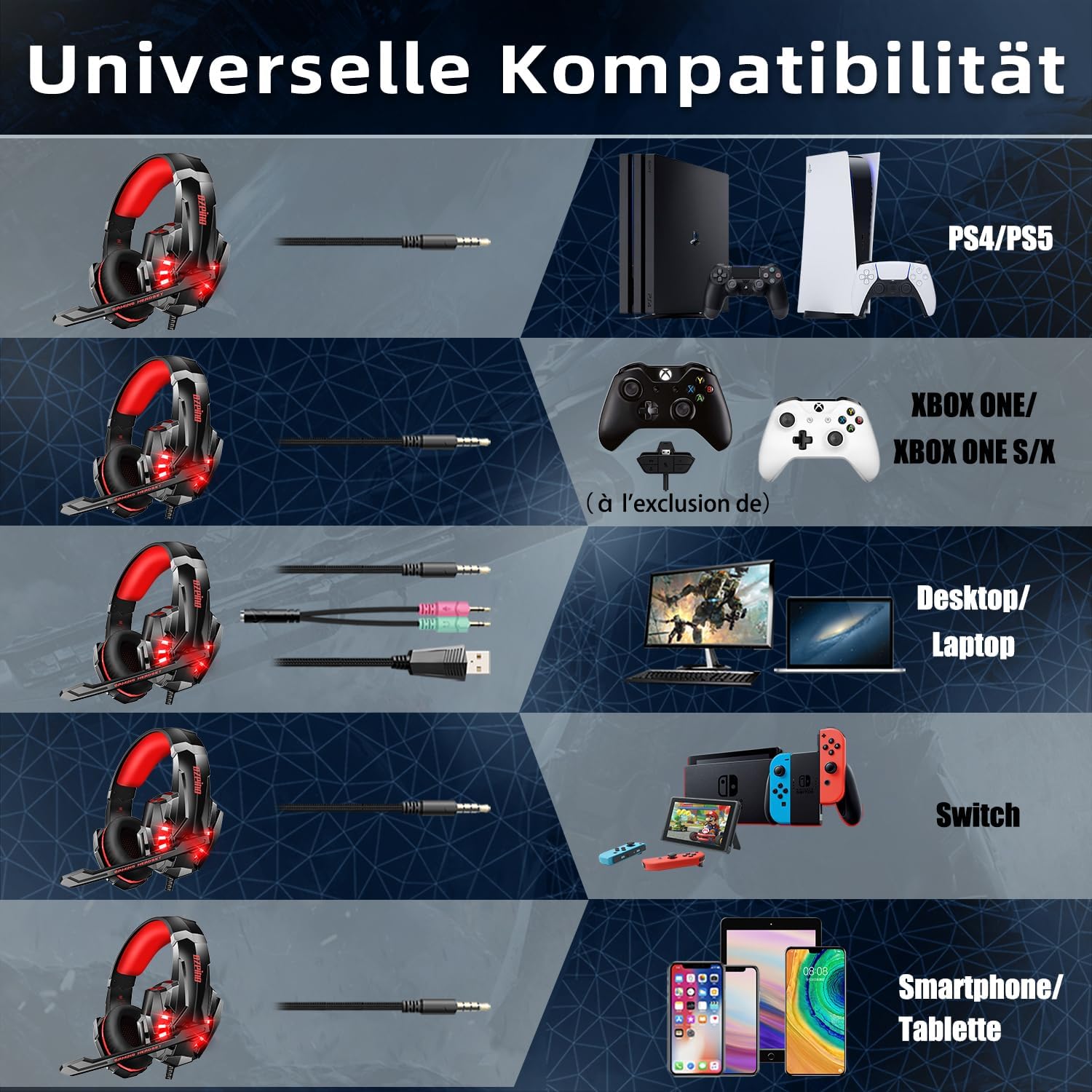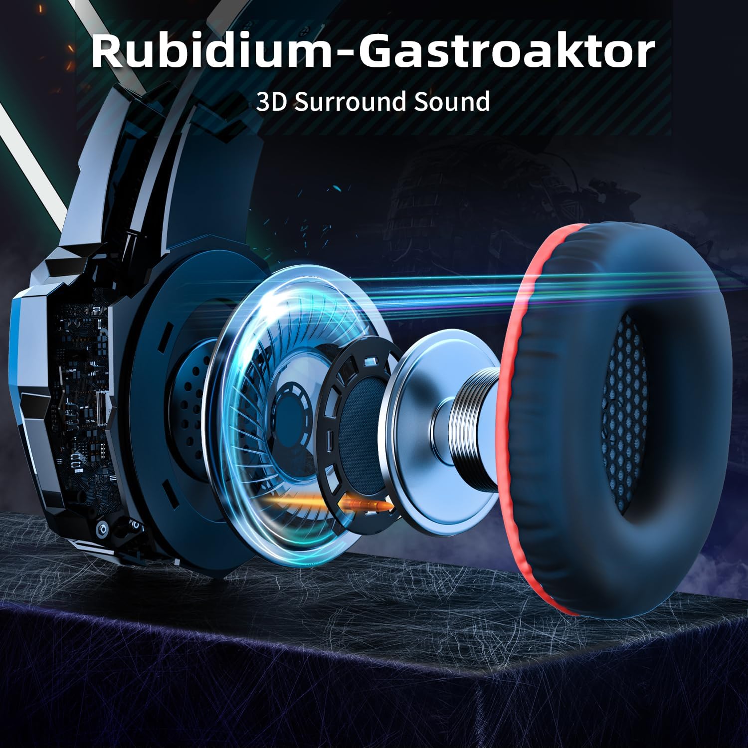• Стерео съраунд звук за прецизно позициониране: геймърски слушалки с насочени аудио съобщения и най-новата звукова технология, тези геймърски слушалки предлагат дълбок бас и спиращи дъха високи честоти за реалистично звуково изживяване по време на игри. Геймърските слушалки могат бързо да определят звука на стъпките и изстрелите на противника от разстояние и са подходящи за повечето игри, например PUBG, Fortnite, Hunter Spider и др.