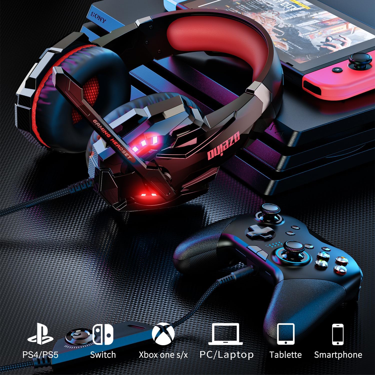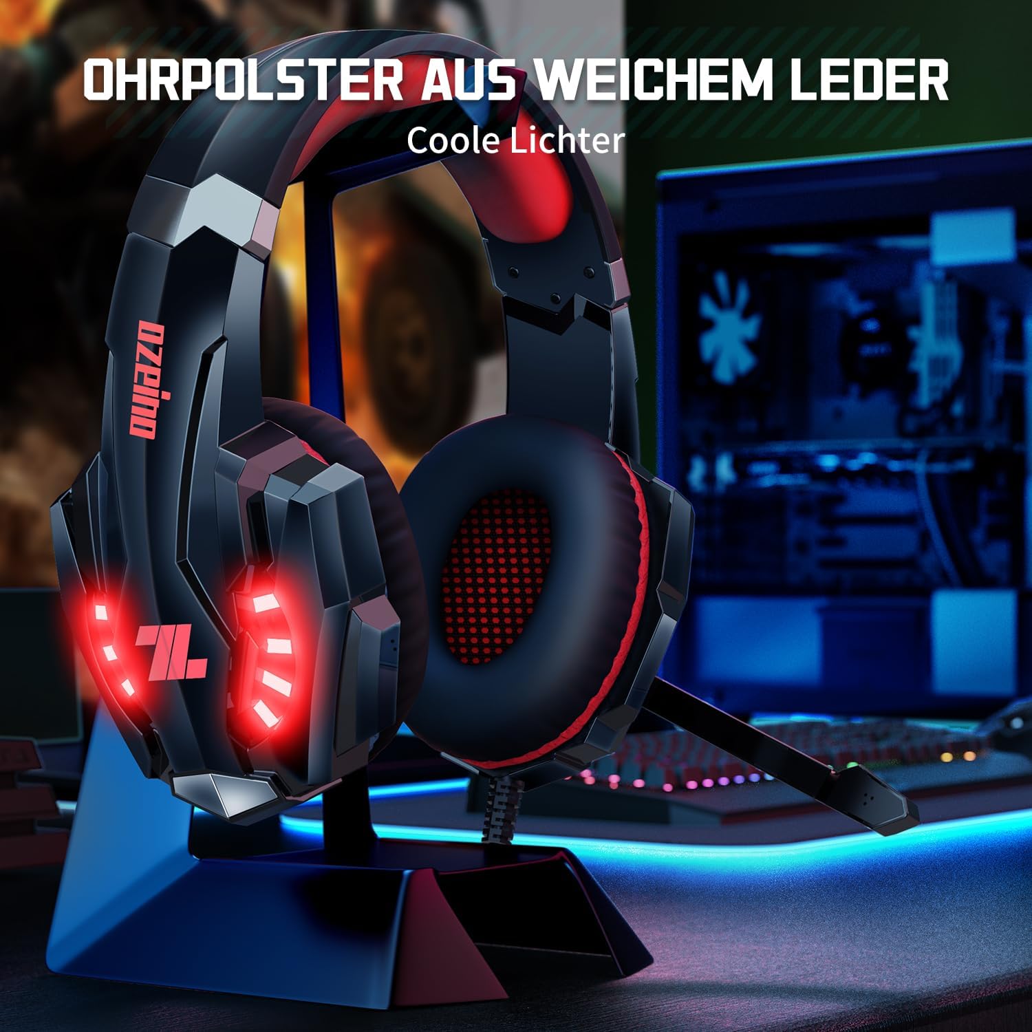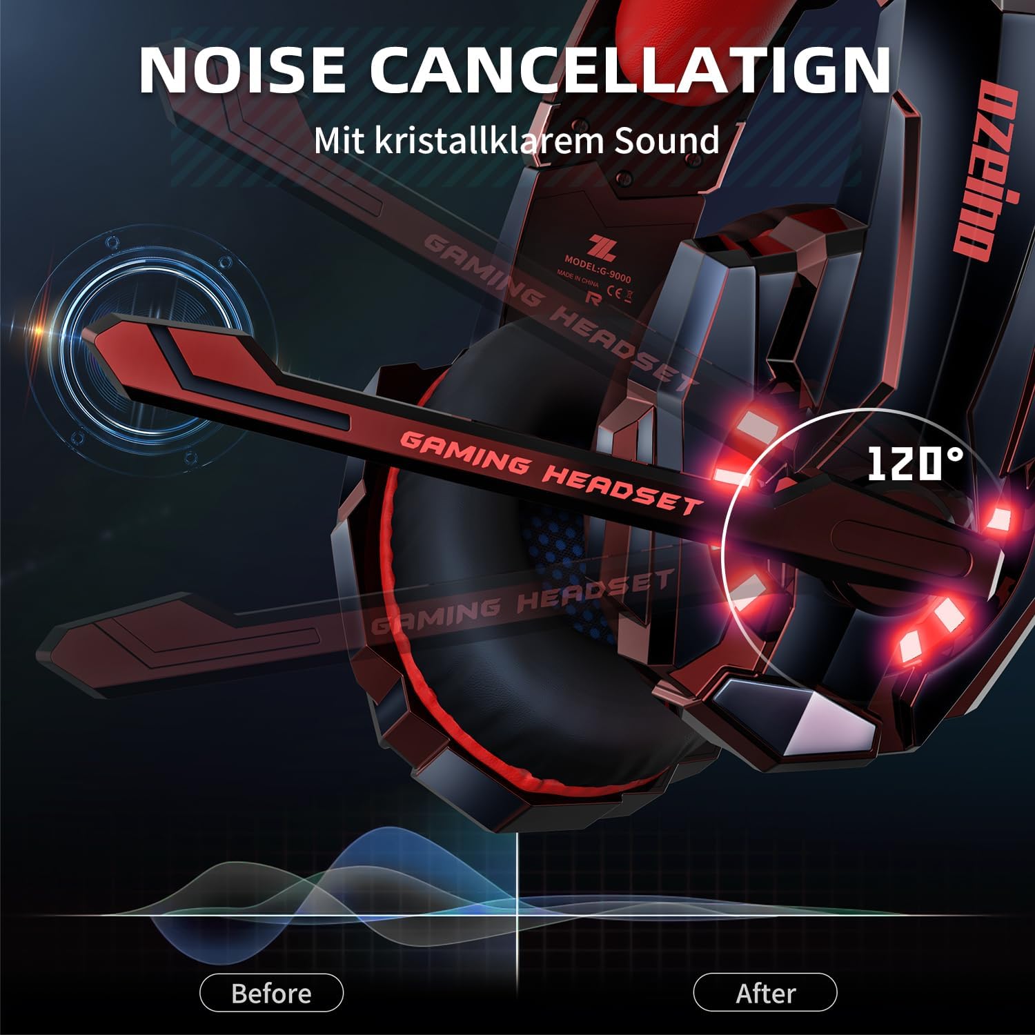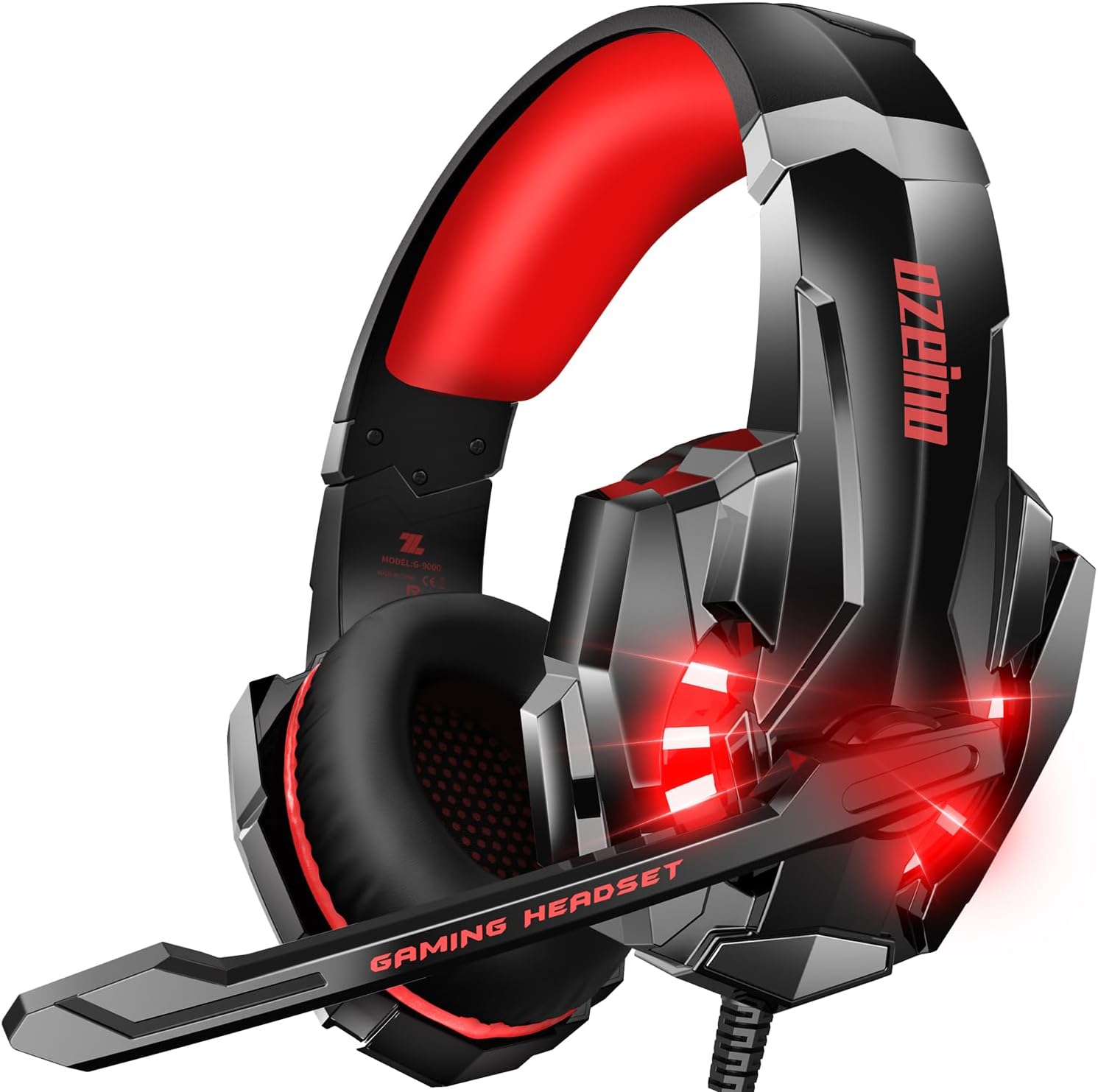 Геймърски слушалки Ozeino за PC PS4 Switch Xbox One, 3D съраунд звук, слушалки с шумопотискане и микрофон, розови
