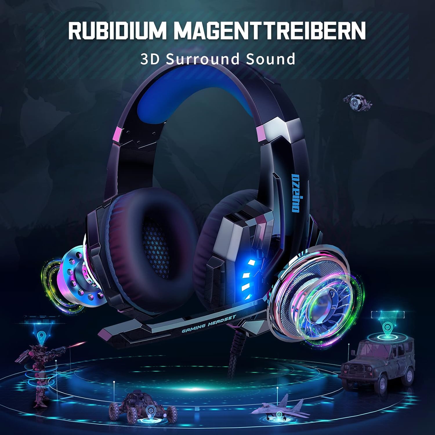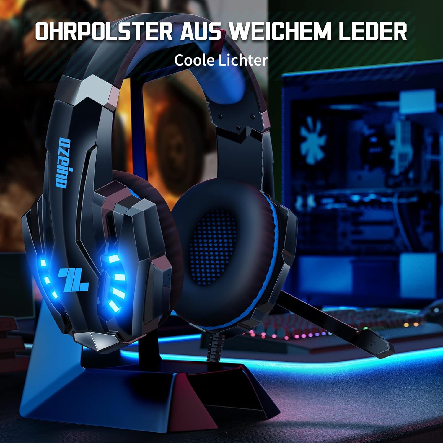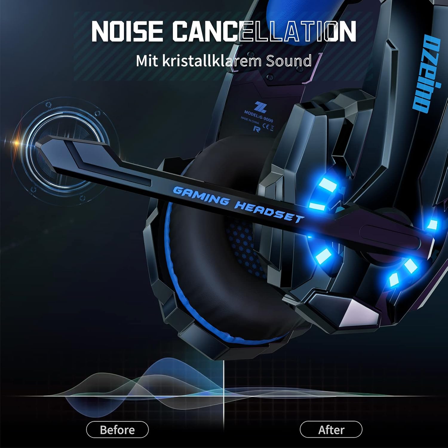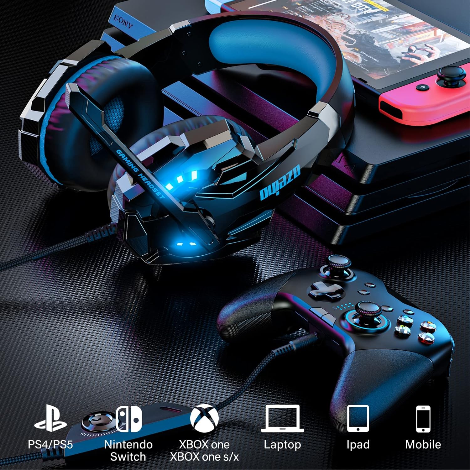 Геймърски слушалки Ozeino за PS4 PS5 3D Surround Sound с шумопотискане и микрофон за PC Xbox One Switch с LED светлина