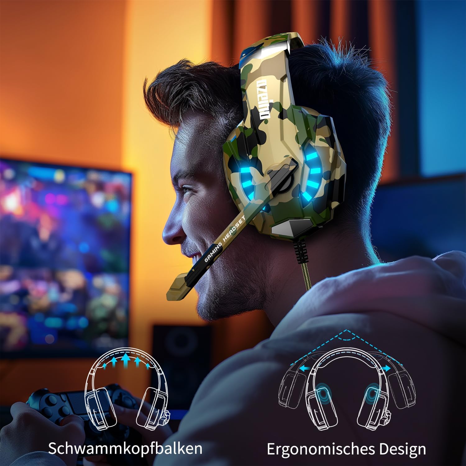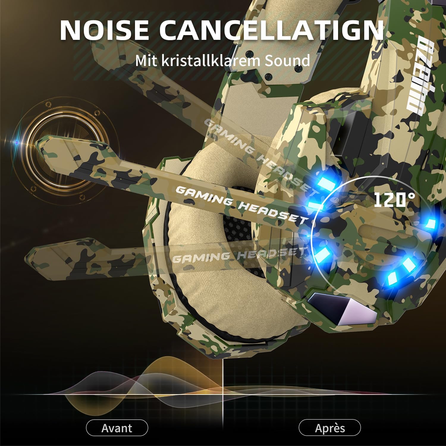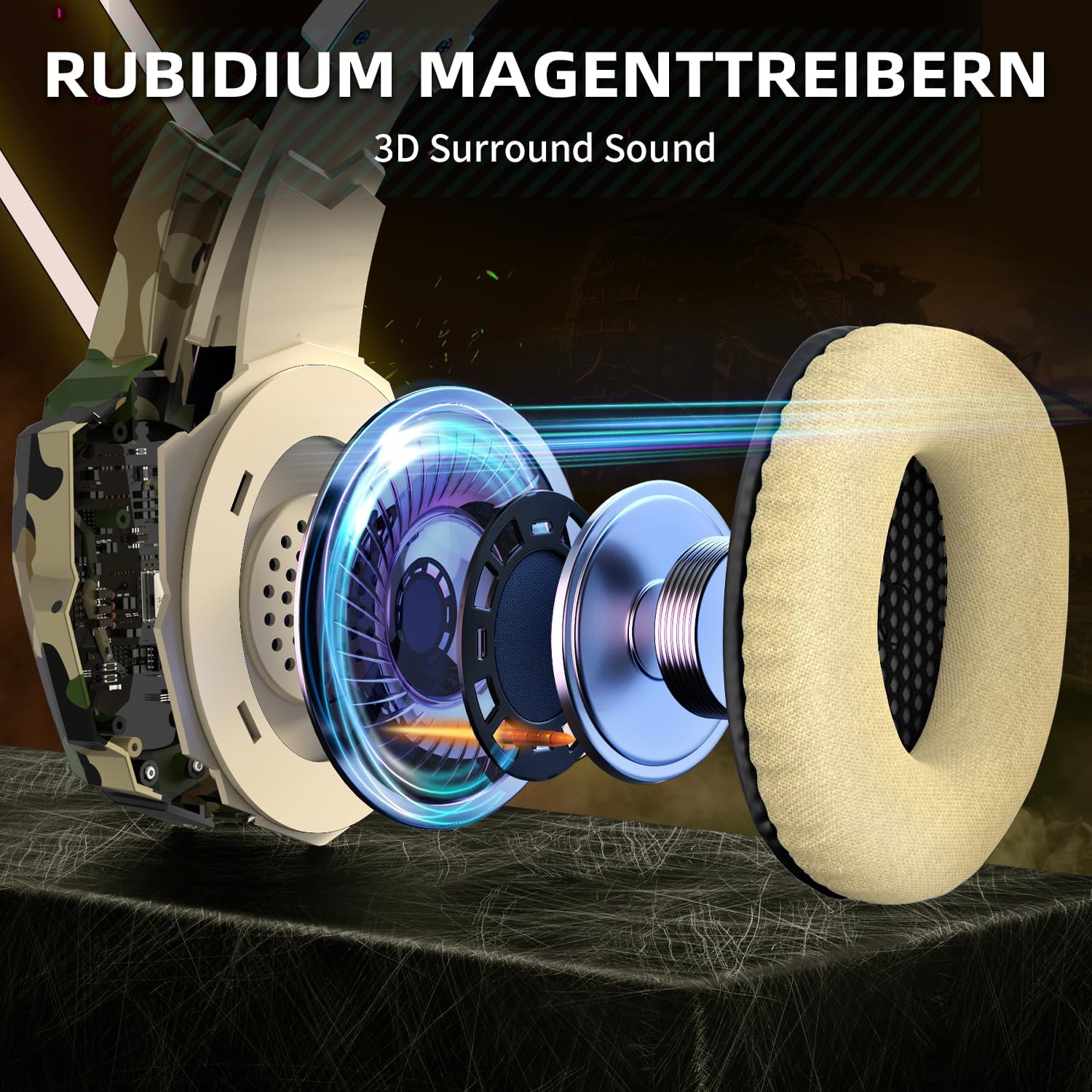 • Стерео съраунд звук за прецизно позициониране: геймърски слушалки с насочени аудио съобщения и най-новата звукова технология, тези геймърски слушалки предлагат дълбок бас и спиращи дъха високи честоти за реалистично звуково изживяване по време на игри. Геймърските слушалки могат бързо да определят звука на стъпките и изстрелите на противника от разстояние и са подходящи за повечето игри, например PUBG, Fortnite, Hunter Spider и др.