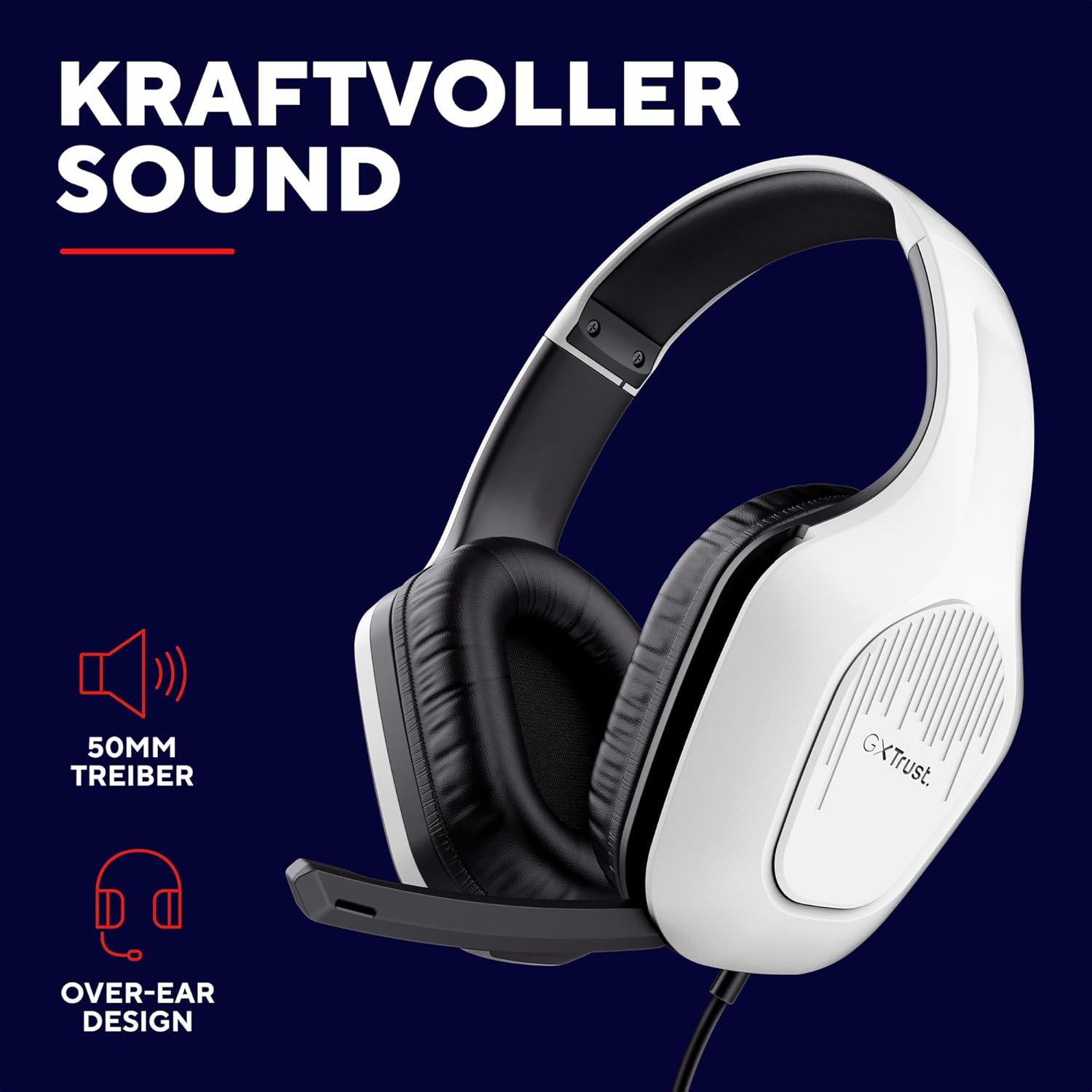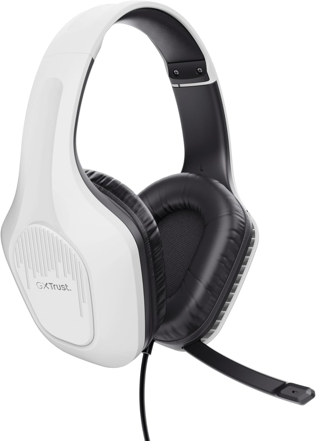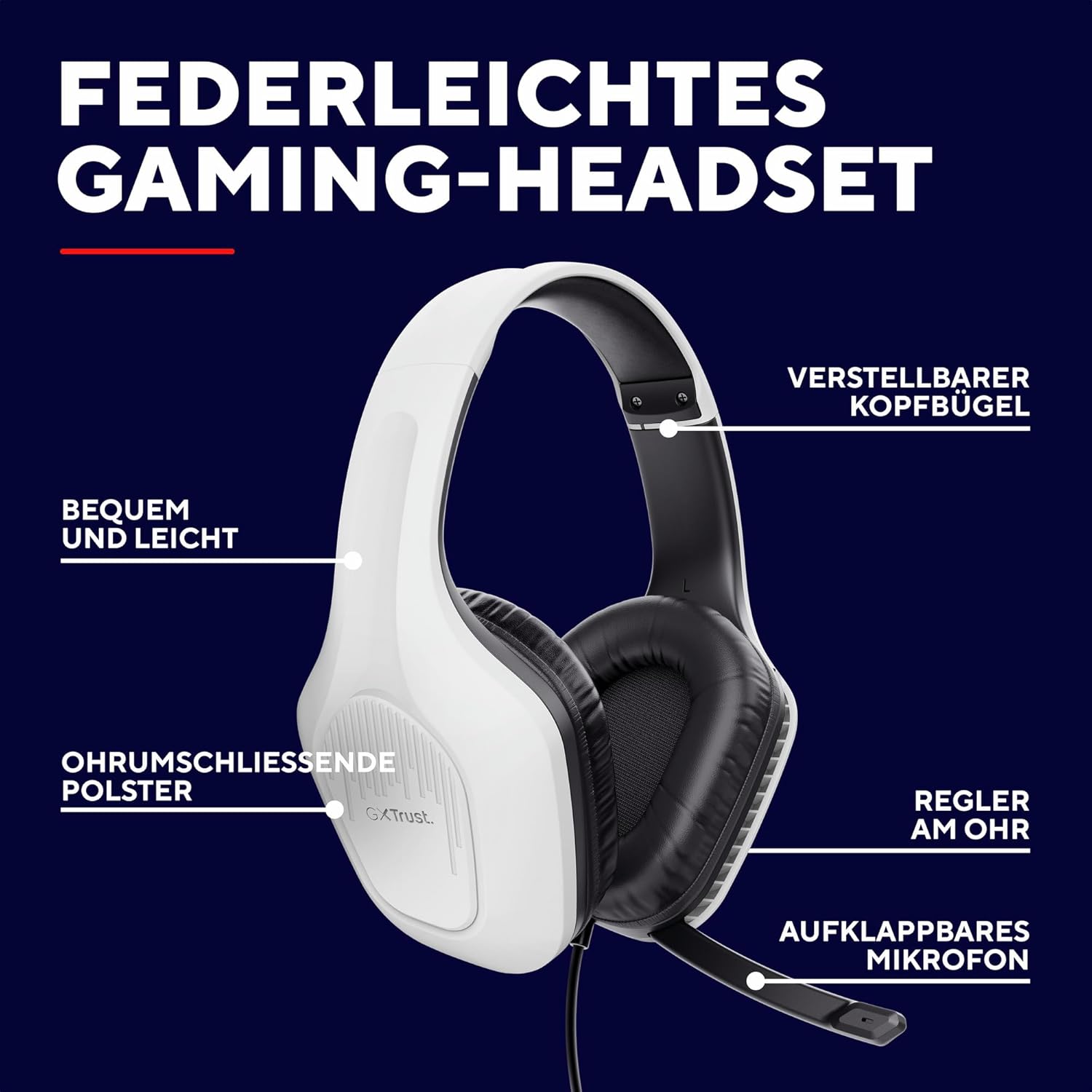Геймърски слушалки Trust Gaming GXT 418W Rayne Lightweight за PC Xbox PS4 PS5 Switch Mobile, 50 мм драйвер, 2 м кабел, 3,5 мм аудио порт, слушалки с кабел, бели