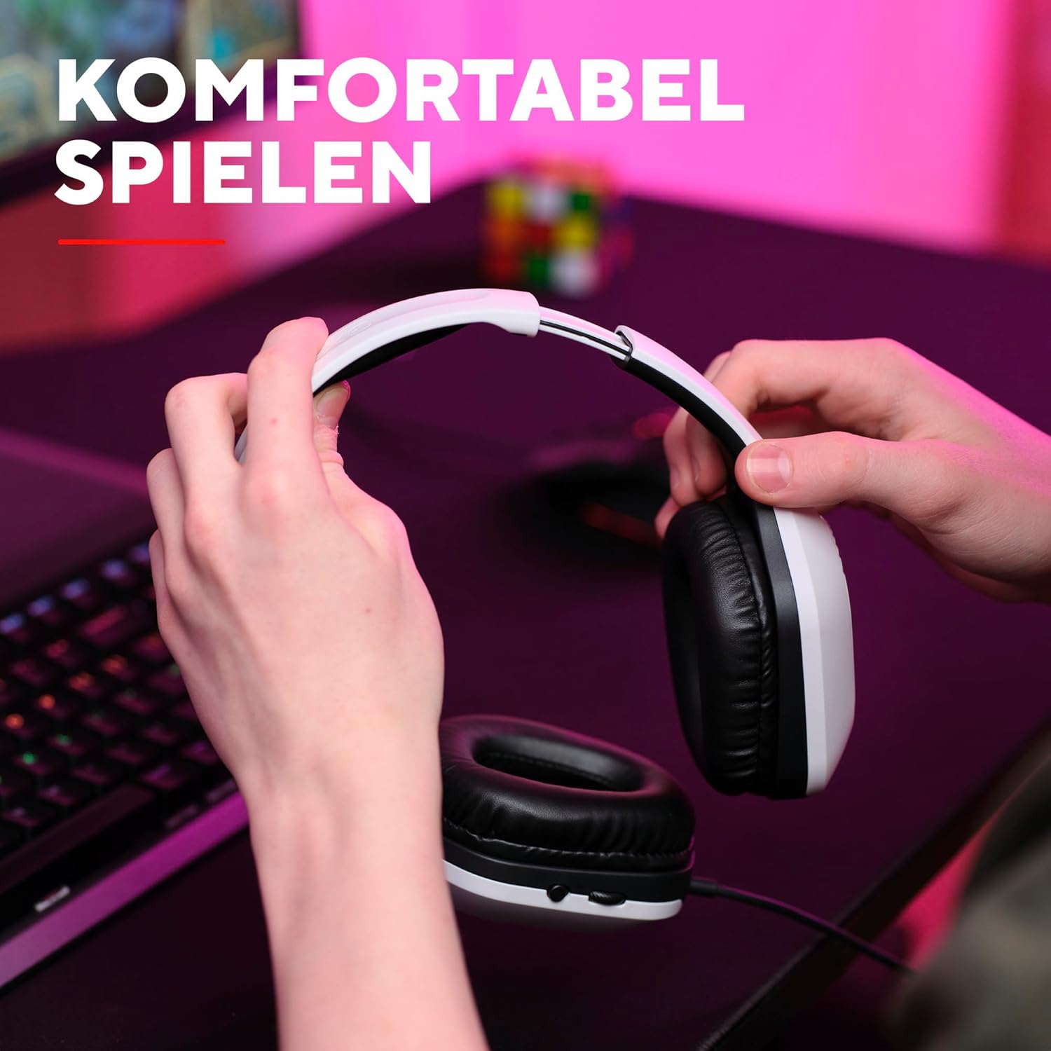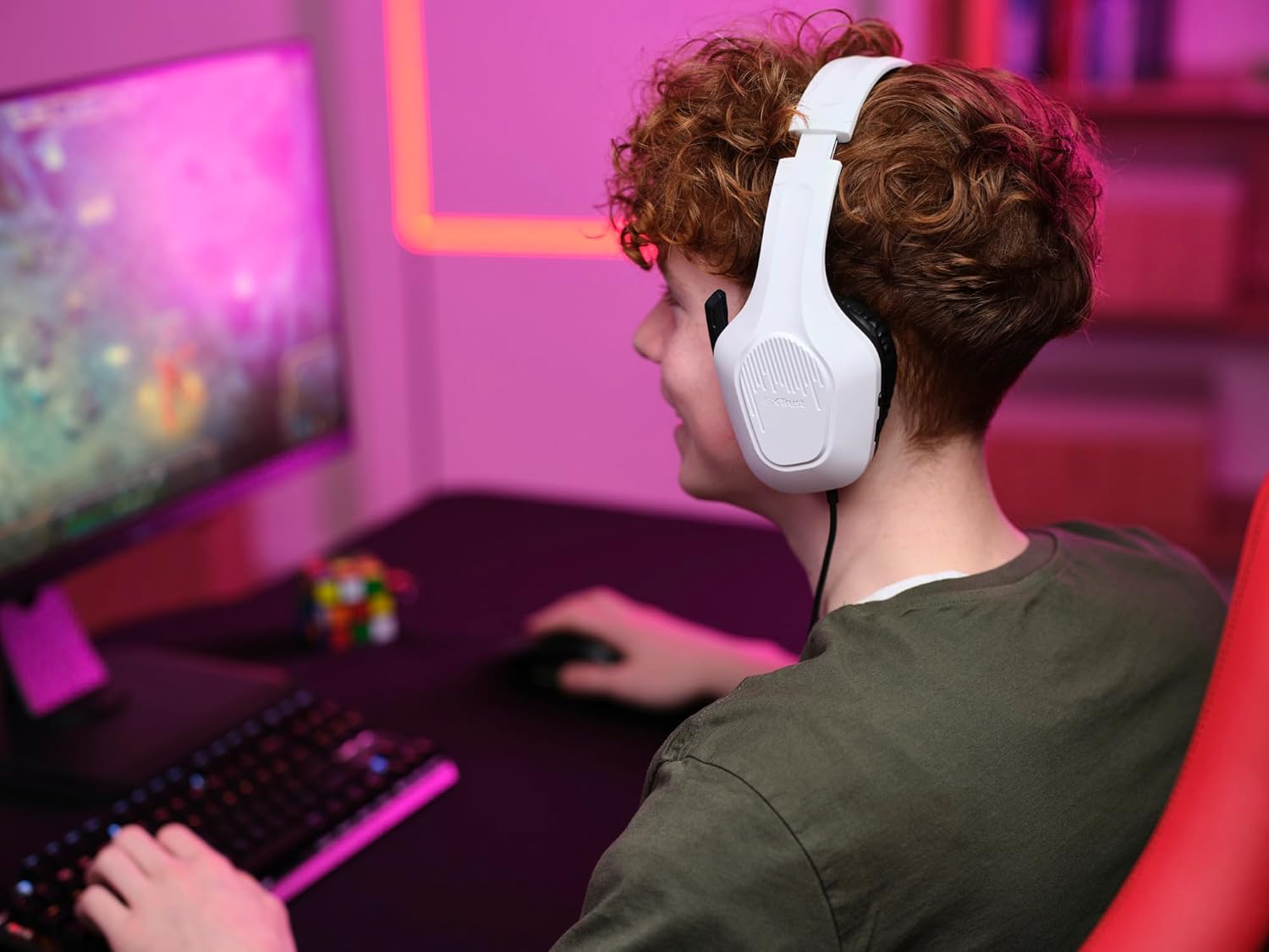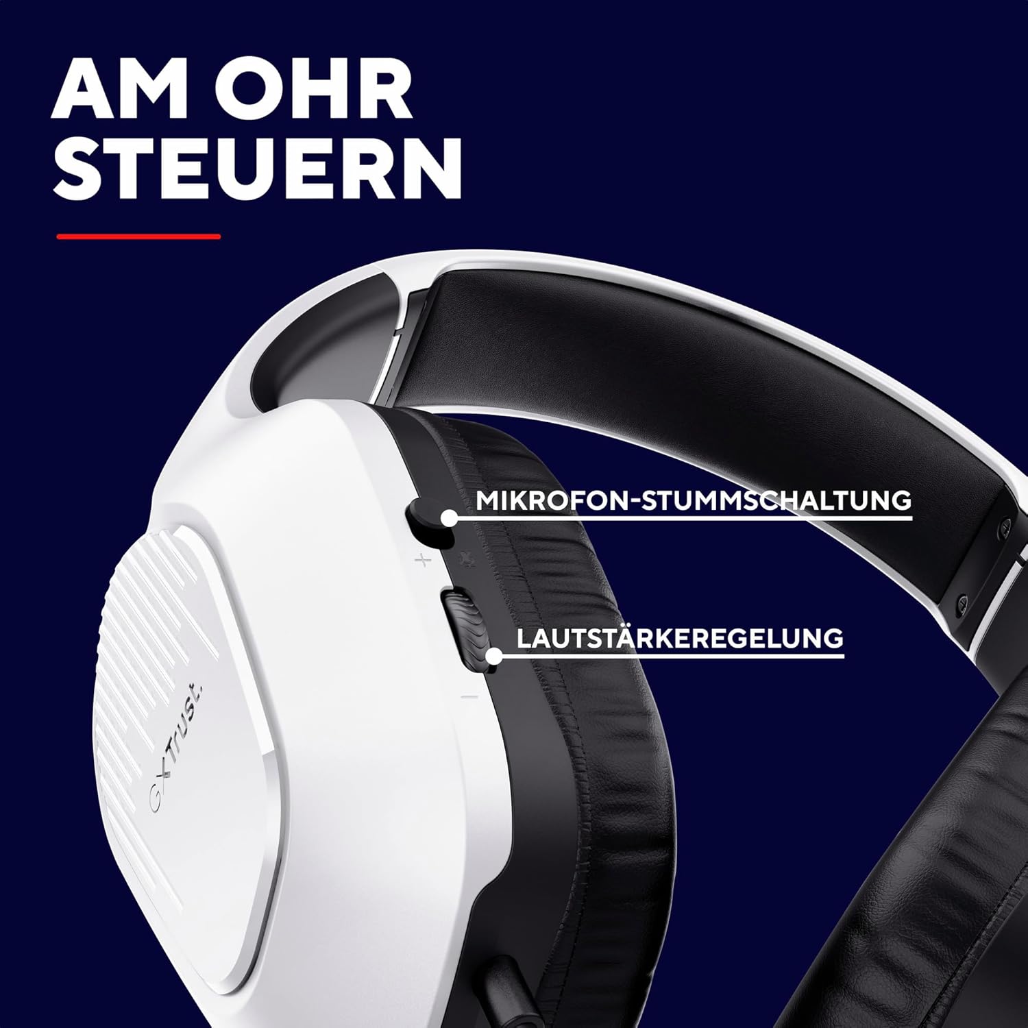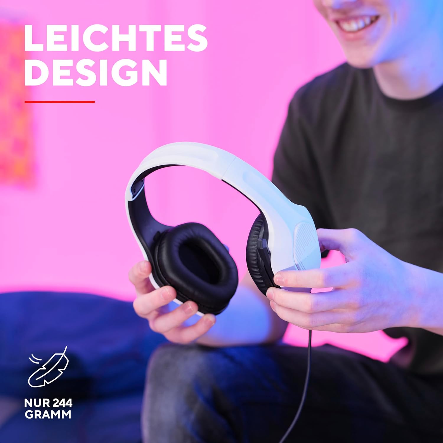 Геймърски слушалки Trust Gaming GXT 418W Rayne Lightweight за PC Xbox PS4 PS5 Switch Mobile, 50 мм драйвер, 2 м кабел, 3,5 мм аудио порт, слушалки с кабел, бели