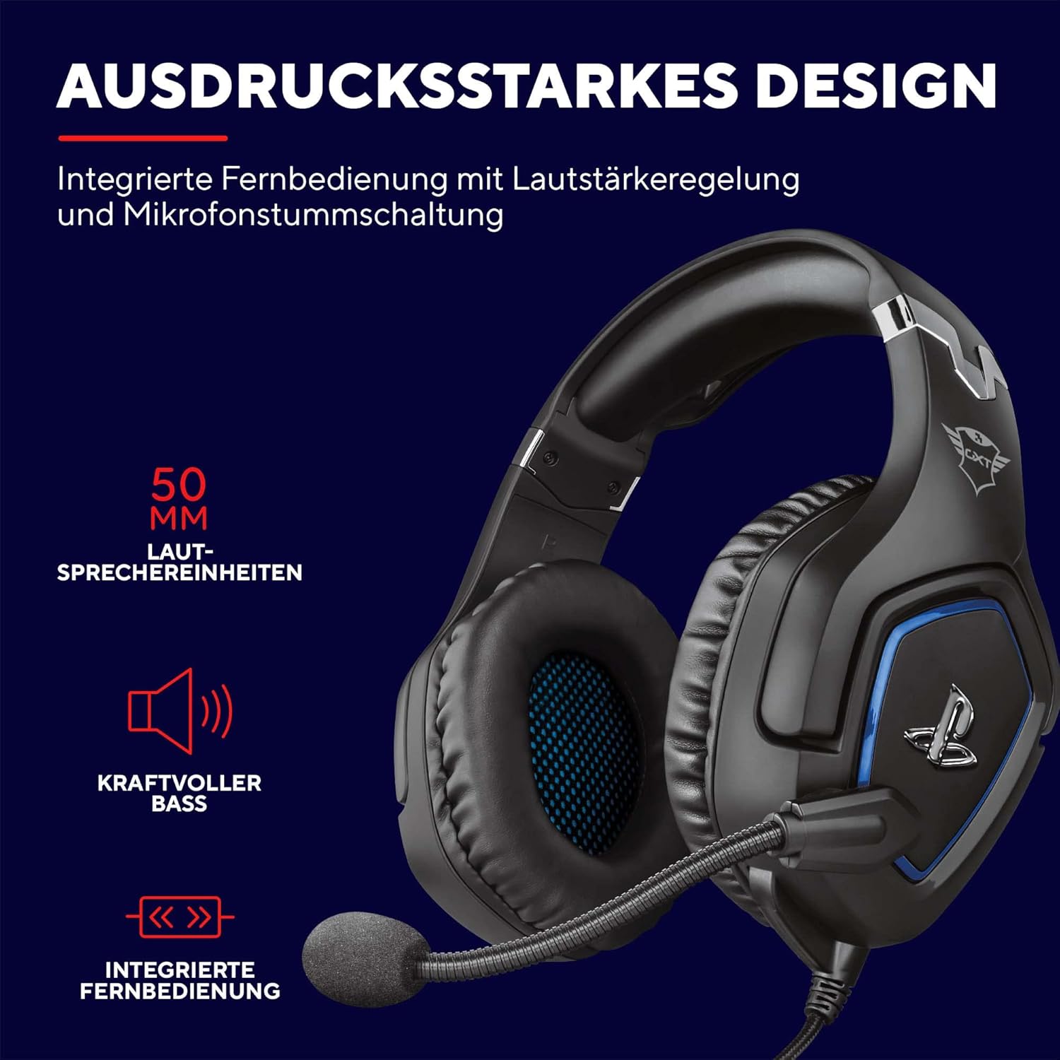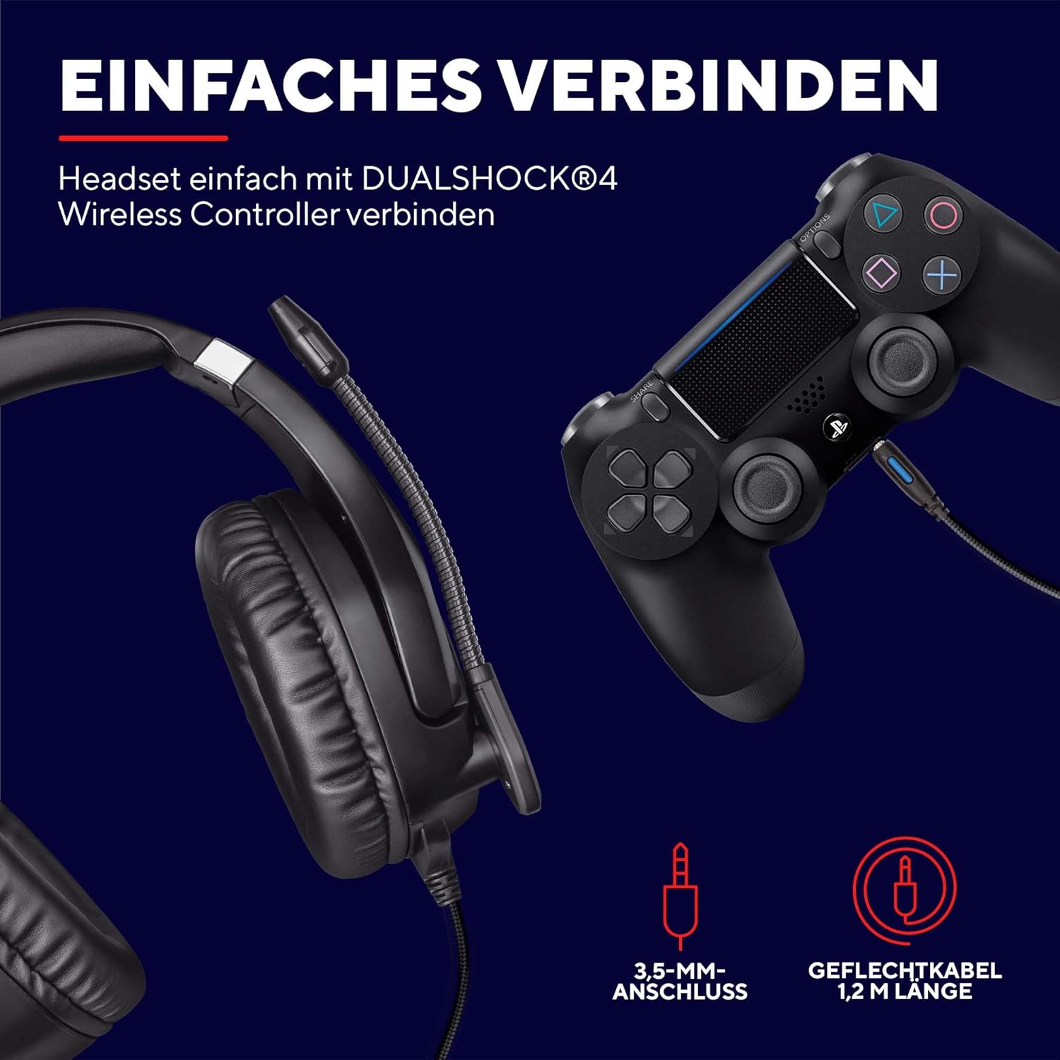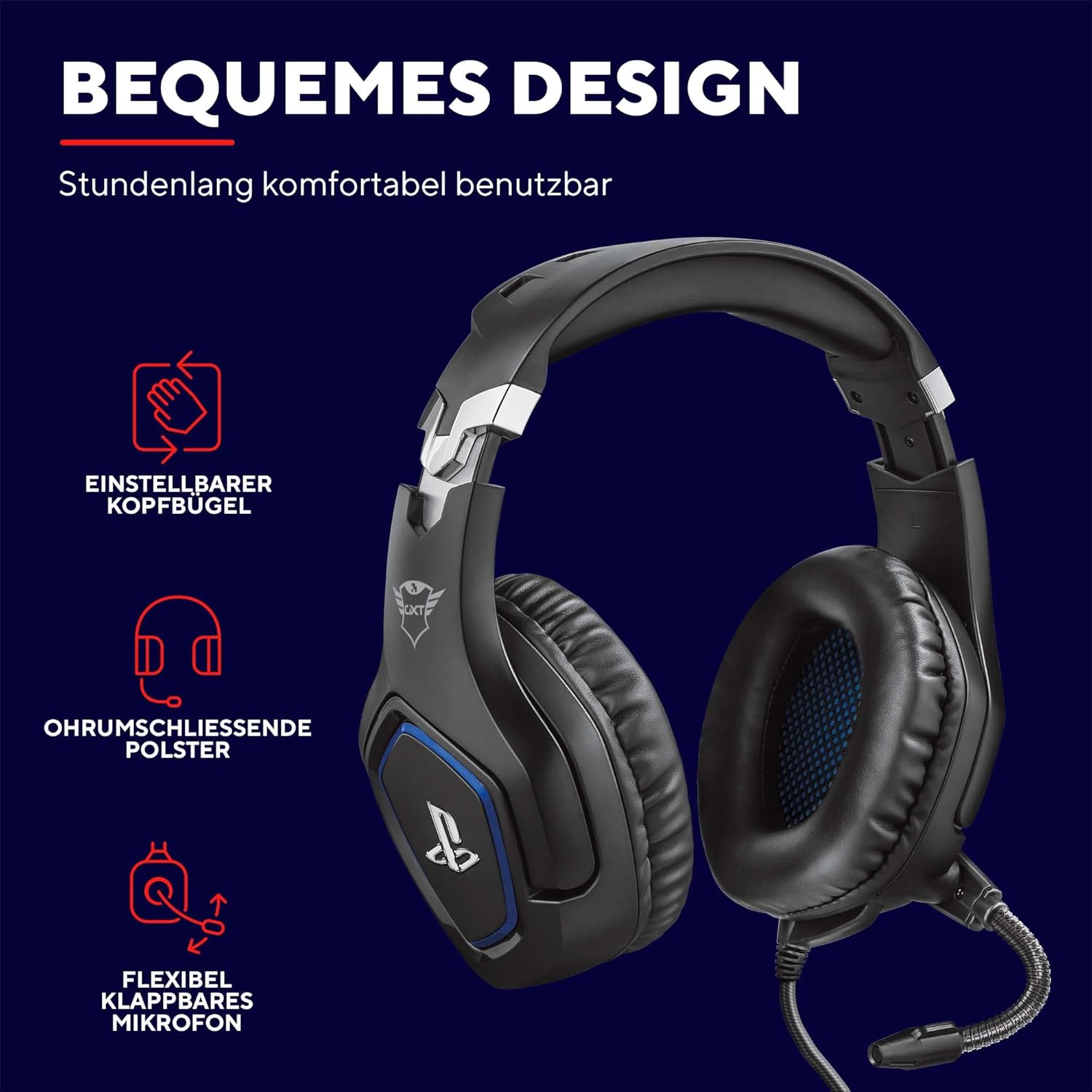 Геймърски слушалки Trust GXT 488 Forze - Официално лицензирани за PlayStation - PS4 и PS5 със сгъваем микрофон и регулируема лента за глава, 3.5 мм кабелни слушалки за уши - Черни
