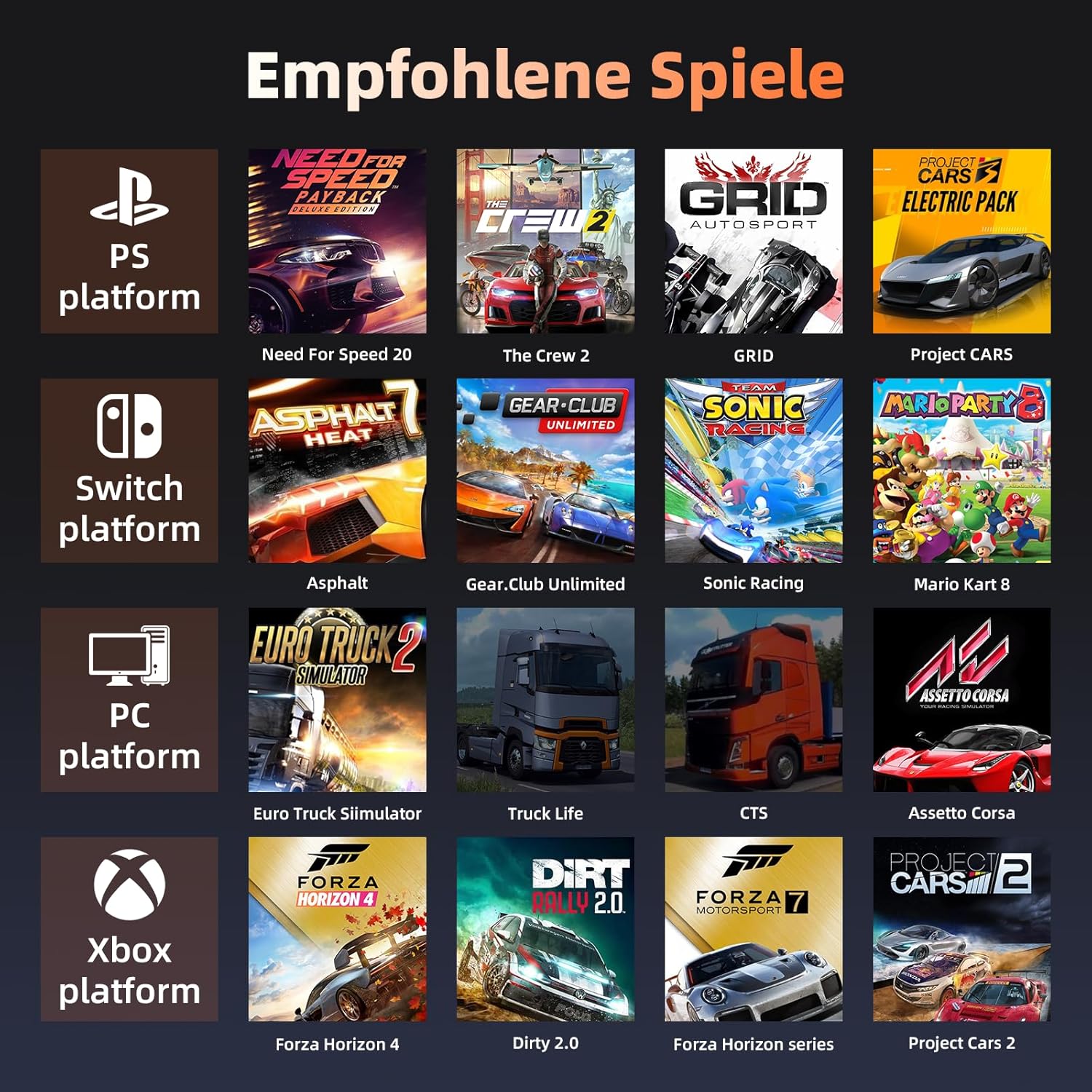 Der Lenkradgriff für Rennspiele ist der gleiche wie der des echten Lenkrads und bietet Ihnen ein lebensechtes und komfortables Gefühl, um die Freude am Spiel zu genießen.