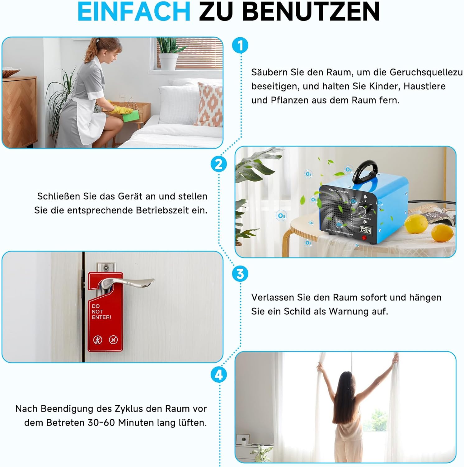 • Приятелско напомняне: Използвайте този озонов генератор само в празни помещения от съображения за безопасност. За да осигурите благополучието на всички, изчакайте поне 30 минути след като озоновият генератор спре да произвежда озон, преди да пуснете хора или домашни любимци обратно в стаята.