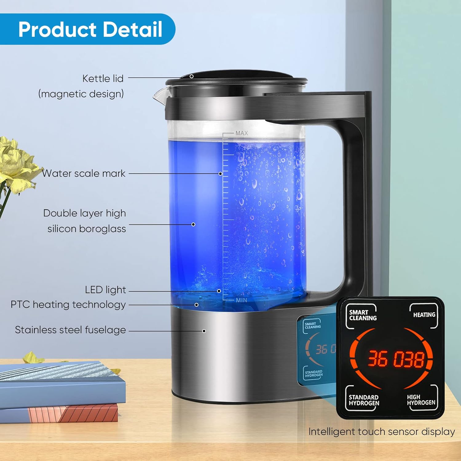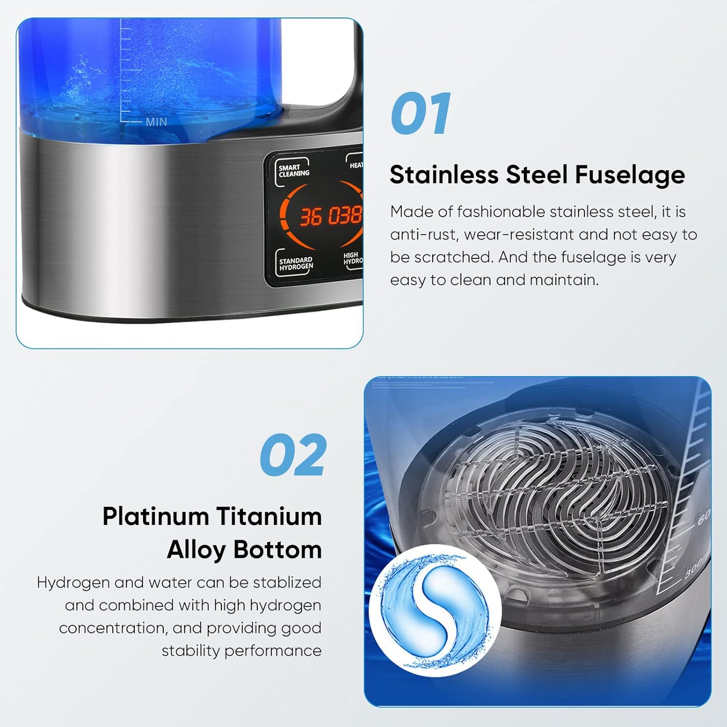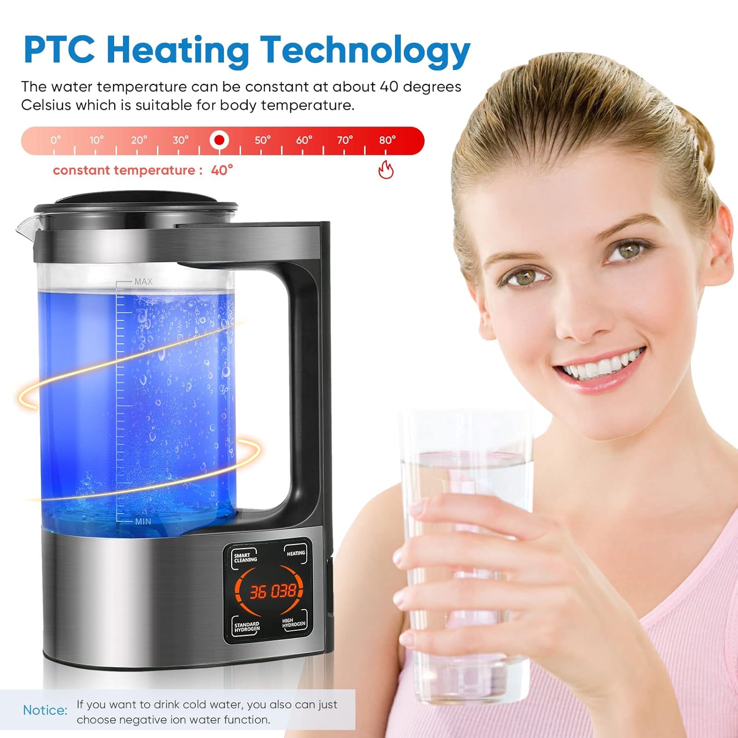 Генератор на водород, Aomdom 2L генератор за богата на водород вода с голям капацитет, преносим йонизатор за водородна вода с термостатна функция и LED сензорен екран за семейства