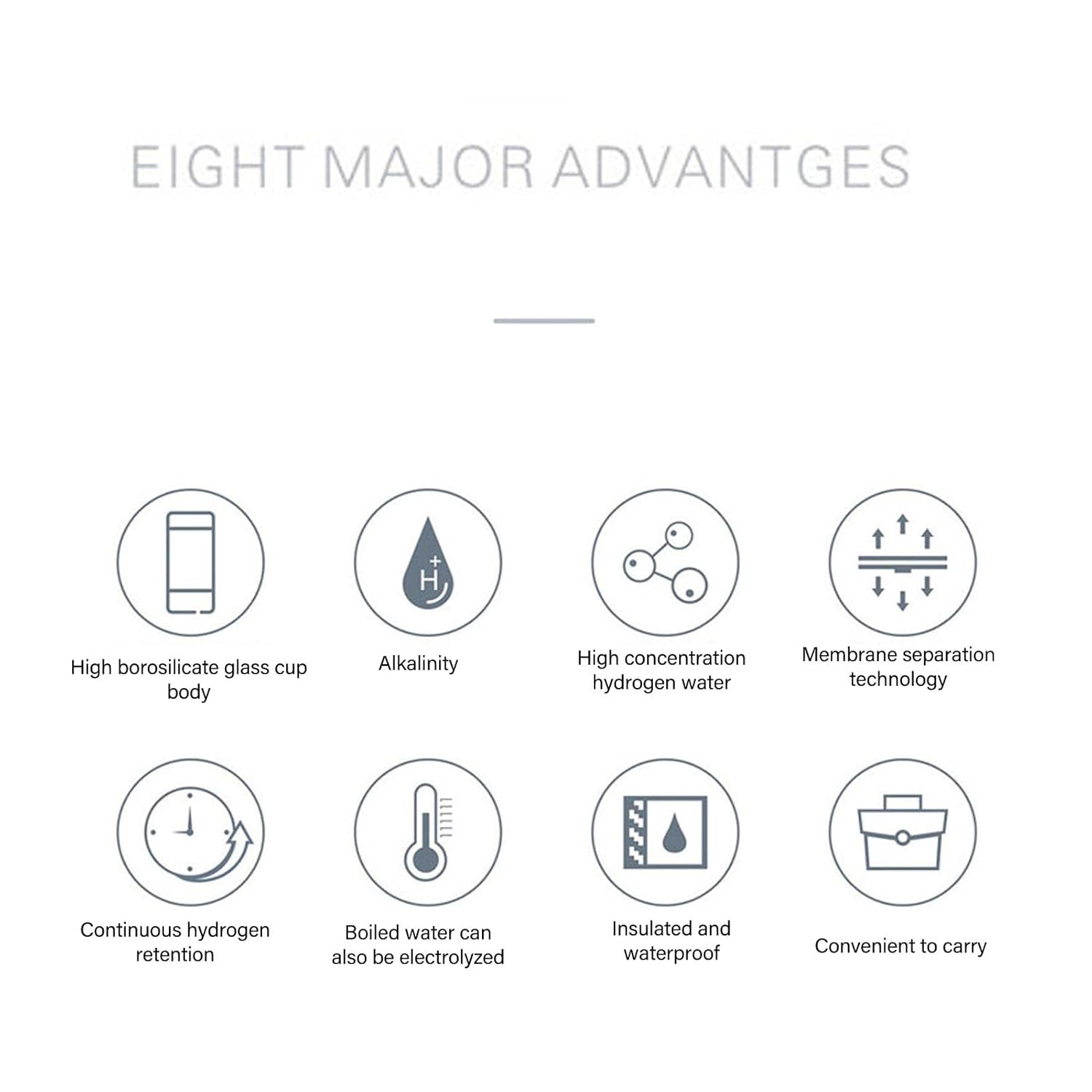 Бърза електролиза: Тази водородна вода се произвежда с помощта на усъвършенствана технология за електролиза. Йонизаторът произвежда високо концентрирана водородна вода само за 3 минути, осигурявайки ви незабавен и удобен достъп до здравословна напитка.