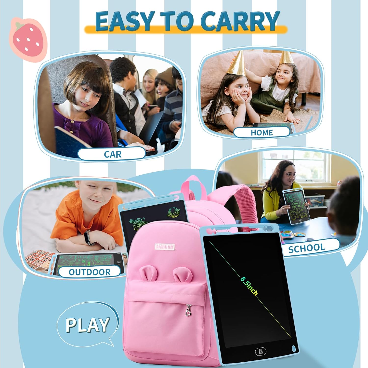 • Перфектен подарък за деца: LCD таблетът за рисуване може да се използва като дъска за драскане, подложка за рисуване за деца, дъска за писане, магическа дъска и др. Той е перфектен избор за подарък за деца от всички възрасти. Може да се използва като образователна играчка за деца в предучилищна възраст. Може да се използва като играчка за пътуване за дълги пътувания и пътувания с кола.