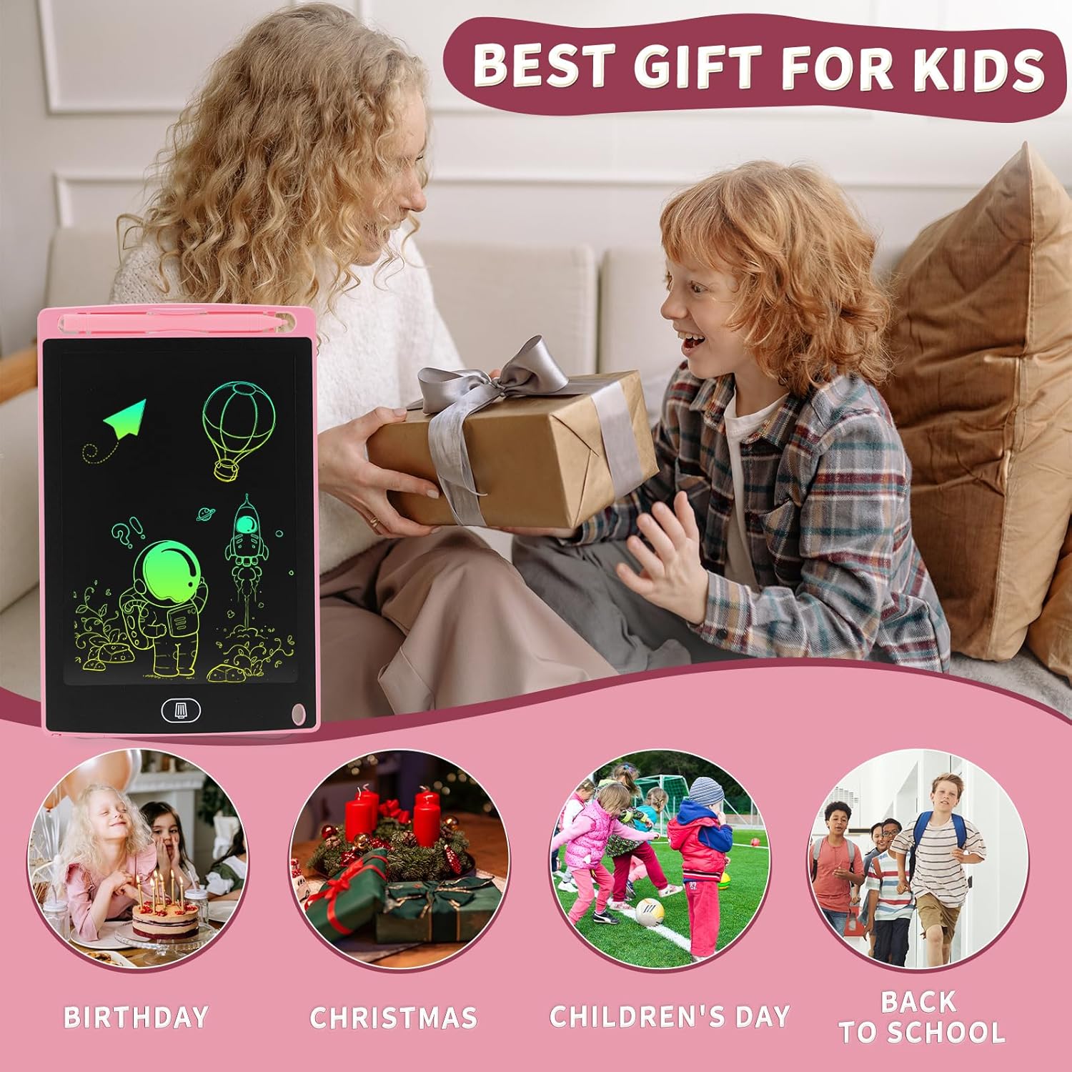 Genialba 8,5-инчов LCD таблет за писане, преносим, ​​изтриваема дъска за рисуване, подарък за деца, таблет за детска игра, за 2, 3, 4, 5, 6, 7-годишни момчета, момичета, син и розов, пакет от 2