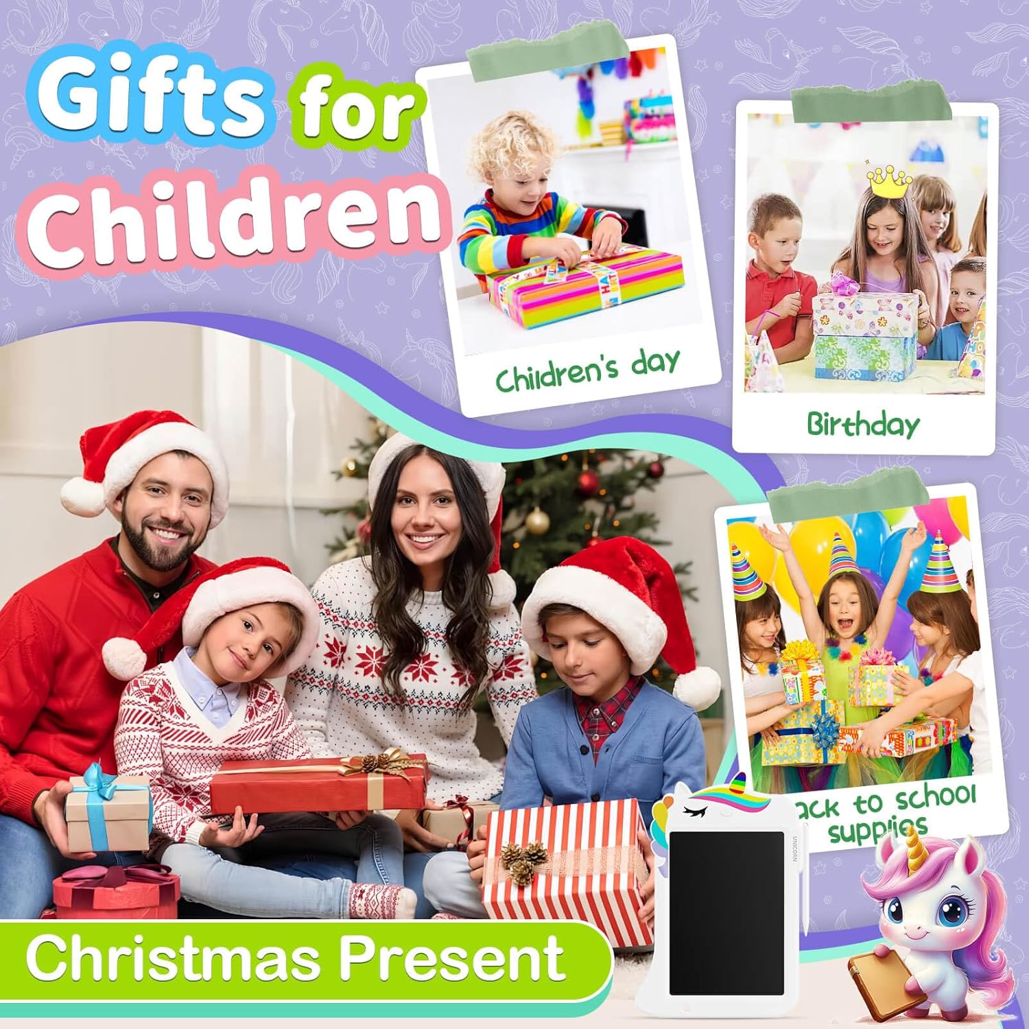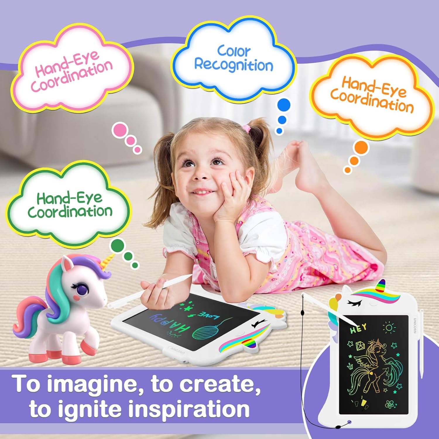 Genialba 8,8-инчов LCD таблет за рисуване с еднорог, дъска за писане, играчка за малко дете, образователна играчка, подаръци за рожден ден, Коледа, играчка, за момчета и момичета на възраст 2 3 4 5 6 години (бял)