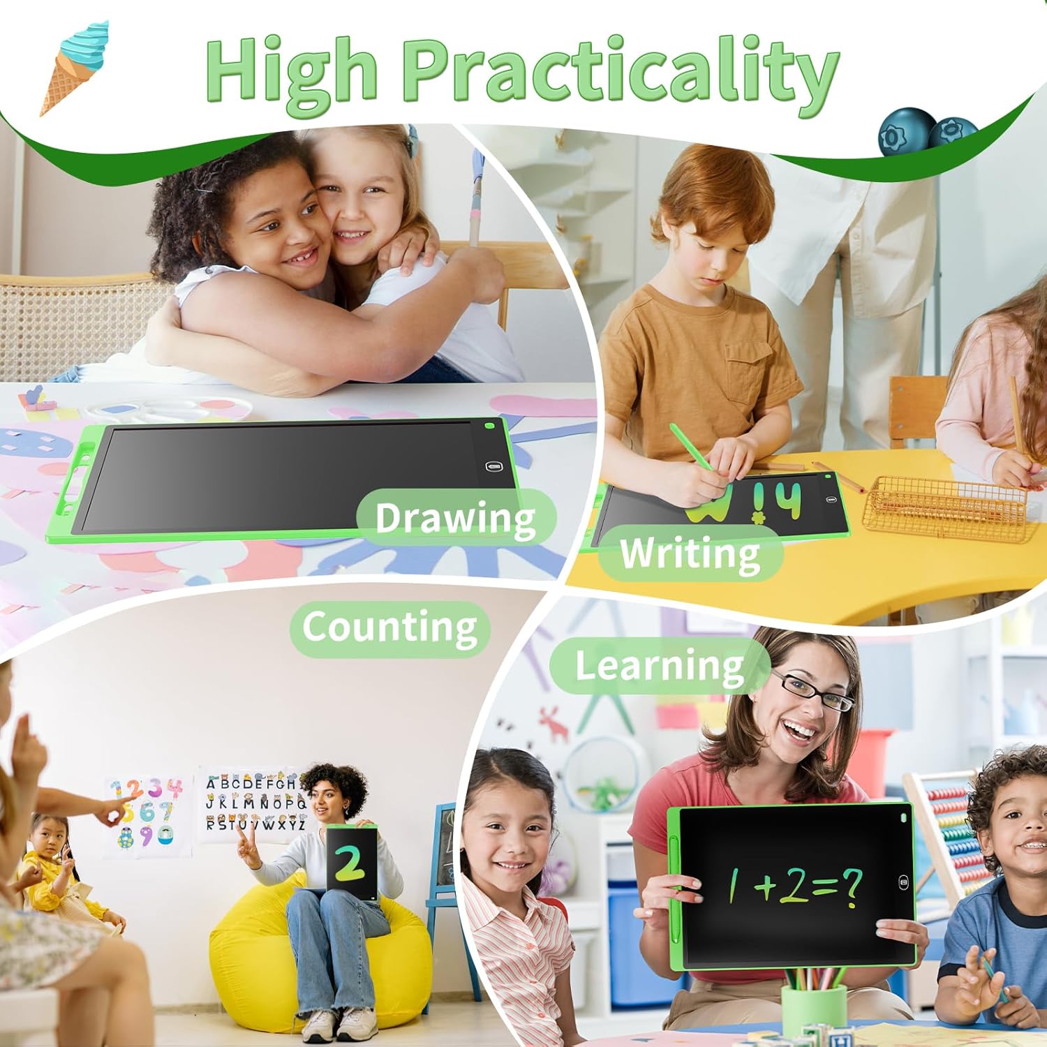 Genialba LCD дъска за писане 12 инча цветен LCD таблет за писане детски подарък LCD таблет за писане електронен таблет графичен таблет за детски игри 2 3 4 5 6 7 години момичета (зелен)