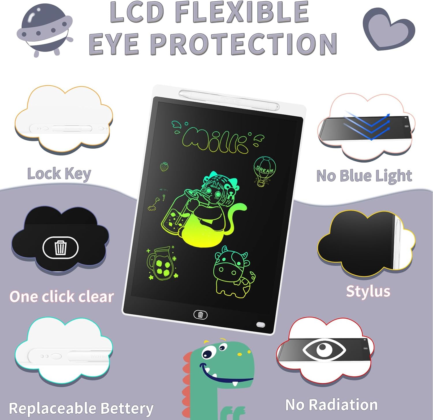 • Образователни играчки за деца: LCD таблет за рисуване с цветен дисплей, много ясно писане, осигурява достатъчно място за рисуване и графити, отприщва детското въображение и стимулира креативността им. LCD дисплеят няма синя светлина, отблясъци или радиация и предпазва детските очи от увреждане в резултат на продължителна употреба. Той е добър партньор за децата.