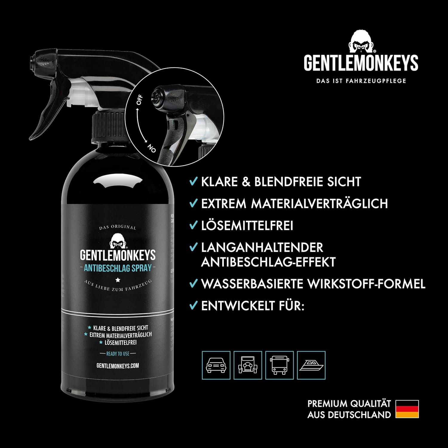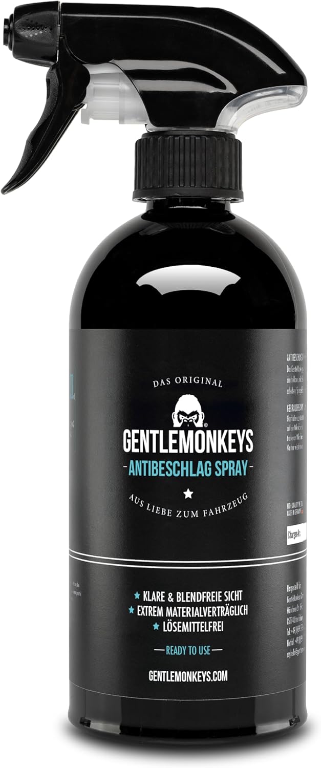 GENTLEMONKEYS Спрей против замъгляване (500 мл), спрей против замъгляване за автомобилни прозорци, стъклени и пластмасови прозорци, очила и други, за дълготрайна защита от замъгляване, спрей против замъгляване за кола