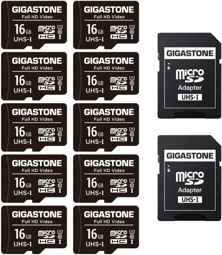GIGASTONE 32GB MicroSDHC карти памет, пакет от 10 + SD адаптер за екшън камера, GoPro, дрон и таблет, скорост на четене до 90MB/s, Full HD видеозапис, Micro SD карта UHS-I клас 10 U1