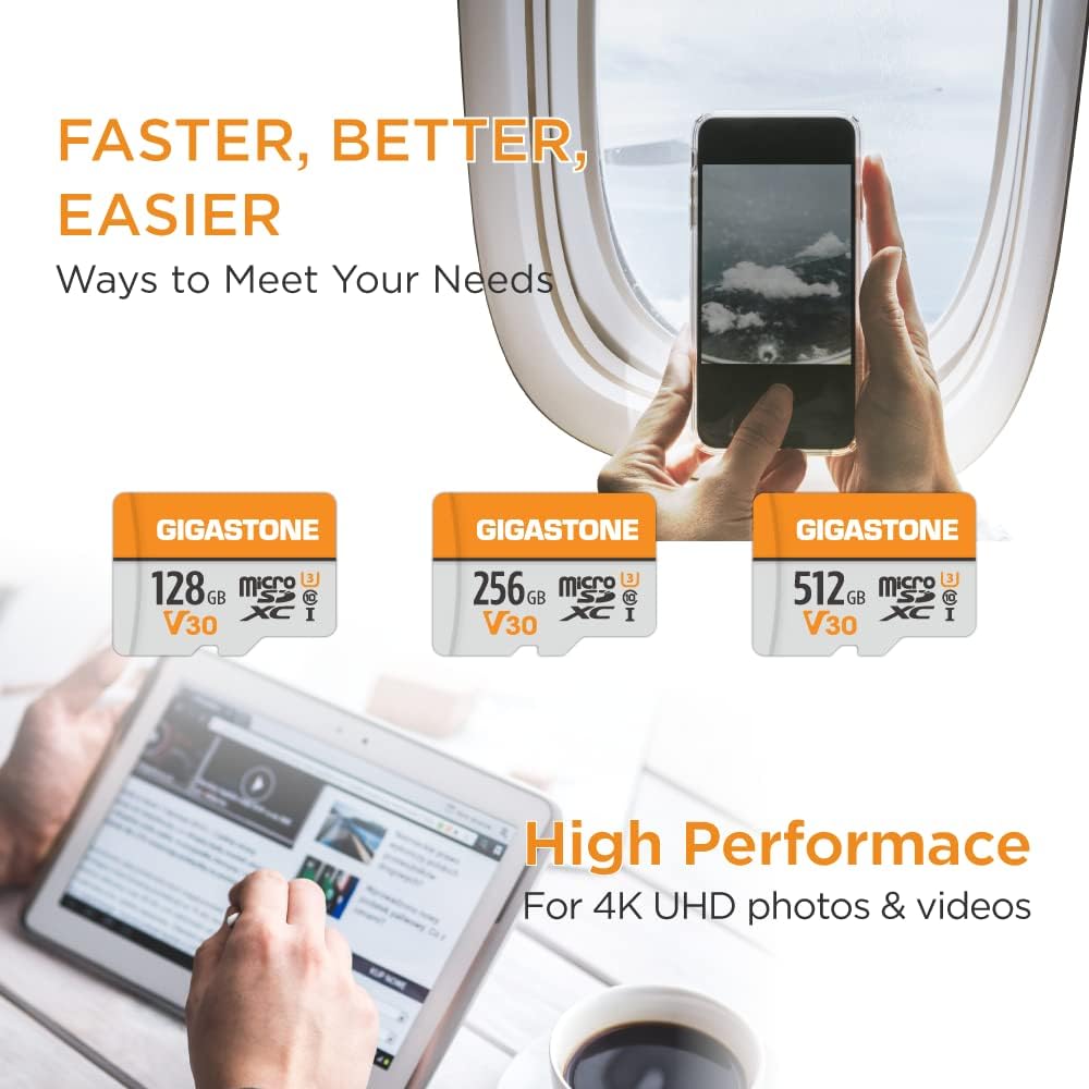 GIGASTONE 512GB MicroSDXC карта памет, пакет от 2 броя + SD адаптер за екшън камера, дрон и таблет, до 100MB/s, 4K UHD видеозапис, UHS-I A1 клас 10 U3