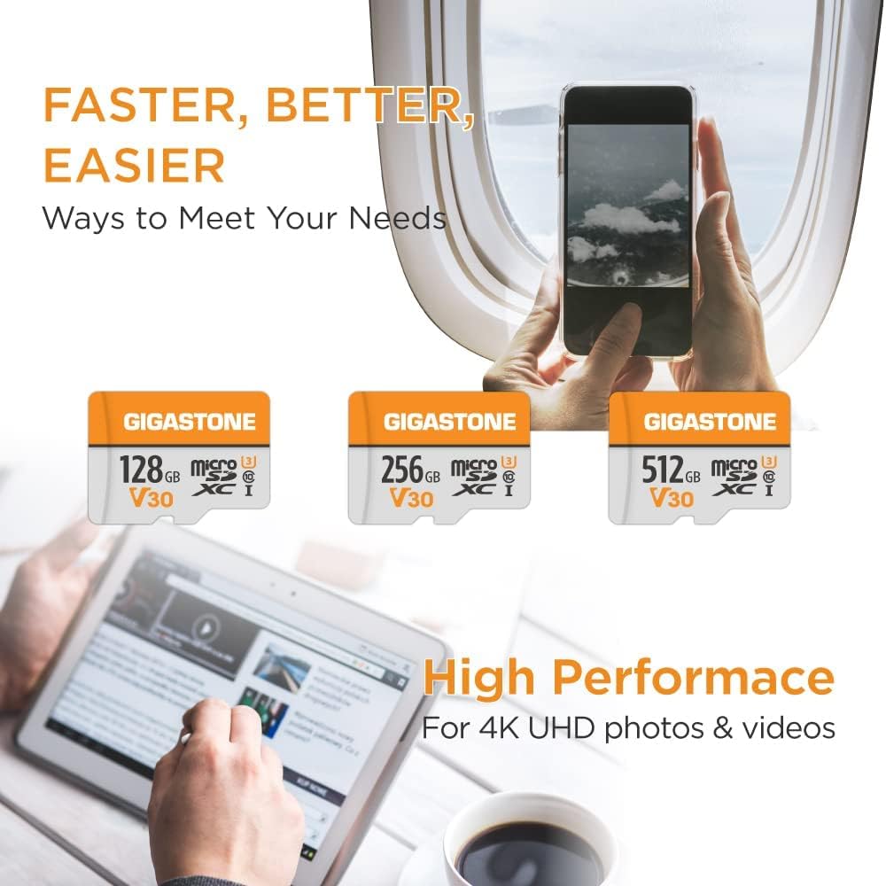 Gigastone карта памет 128GB 2 карти GoPro камера Дрон Samsung Sony Високоскоростна 4K UHD видео A1 U3 C10 MicroSDXC + SD адаптер