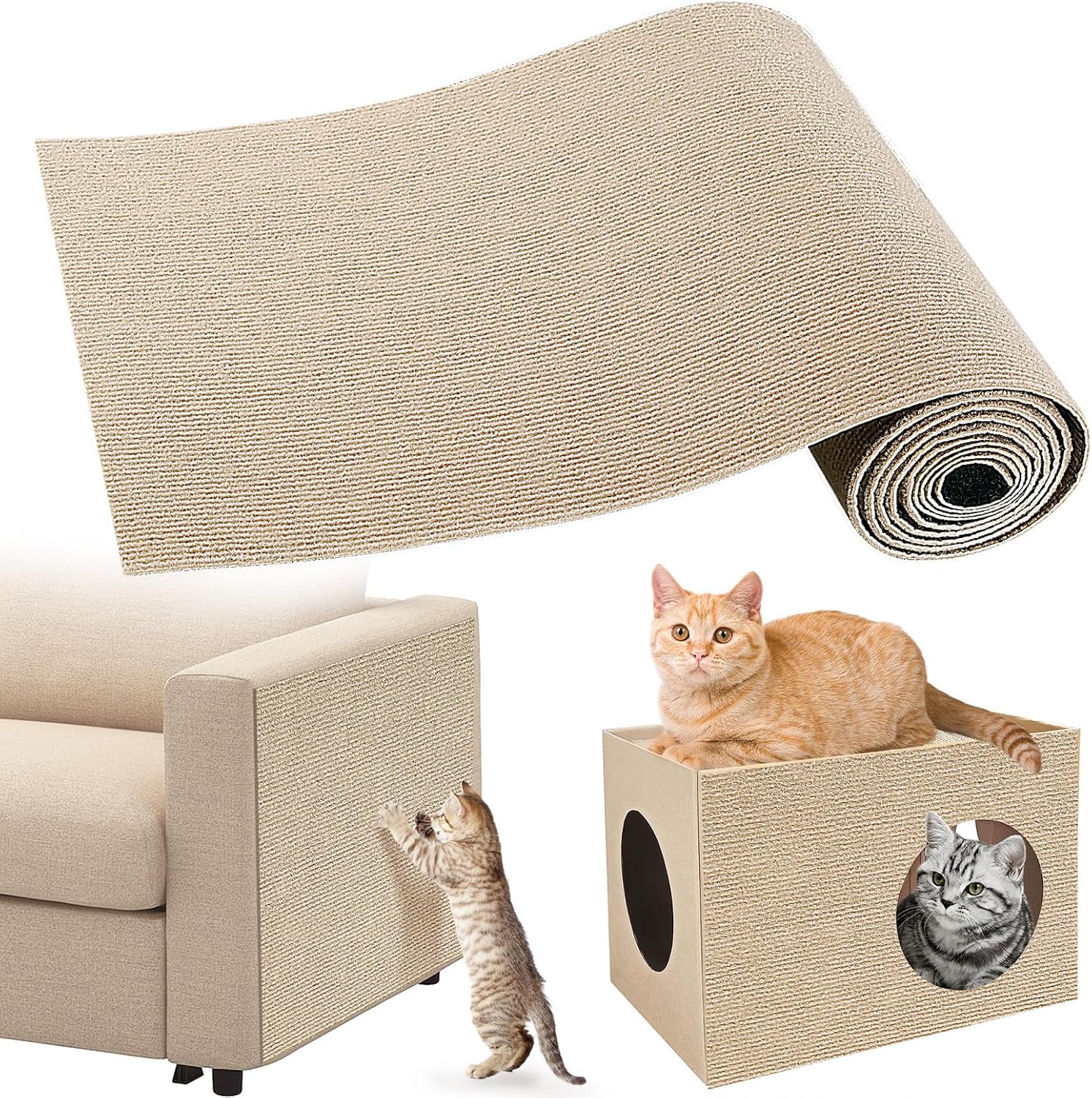 • Подложка за драскане, изработена от висококачествен материал: тази подложка за драскане за котки е изработена от 100% висококачествен полиестер. Полиестерните влакна осигуряват изключителна здравина и гъвкавост, устойчиви са на износване и разтягане и не се деформират лесно. Те са устойчиви на острите нокти на вашата котка и ефективно защитават вашите мебели.