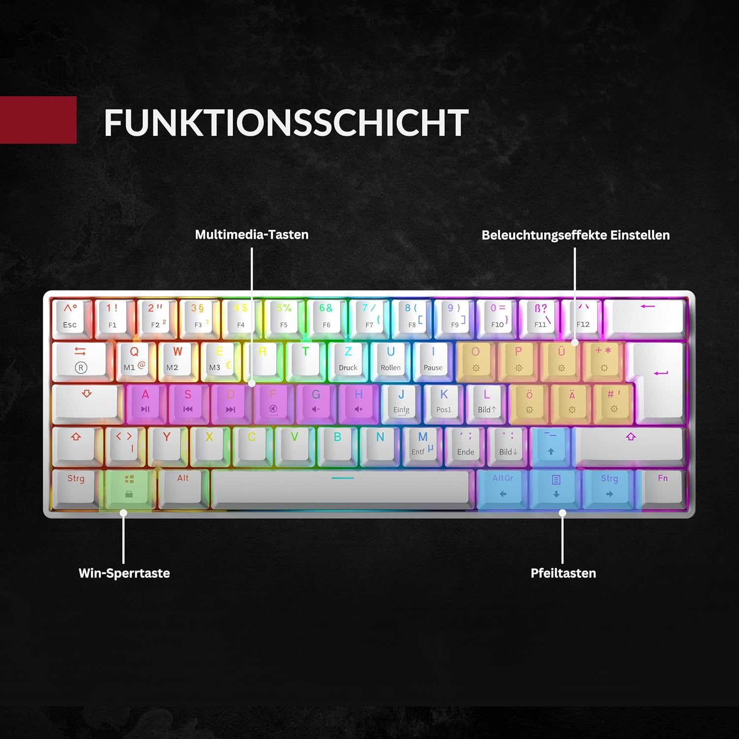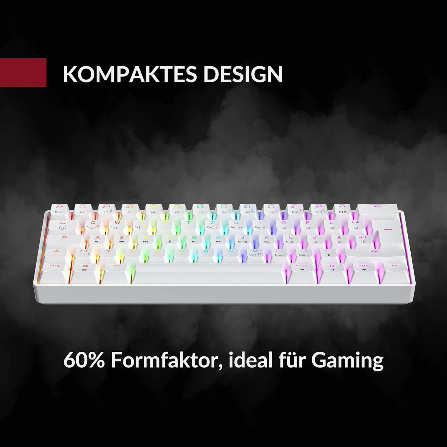 GK61 Механична геймърска клавиатура с възможност за бърза смяна - 62 клавиша, многоцветна RGB LED подсветка за PC/Mac плейъри - ISO немско оформление (Gateron Optical жълто, бяло)