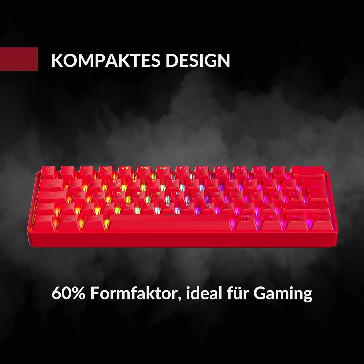 GK61 Механична геймърска клавиатура с възможност за бърза смяна - 62 клавиша, многоцветна RGB LED подсветка за PC/Mac плейъри - ISO немско оформление (Gateron Optical Silver, Red)
