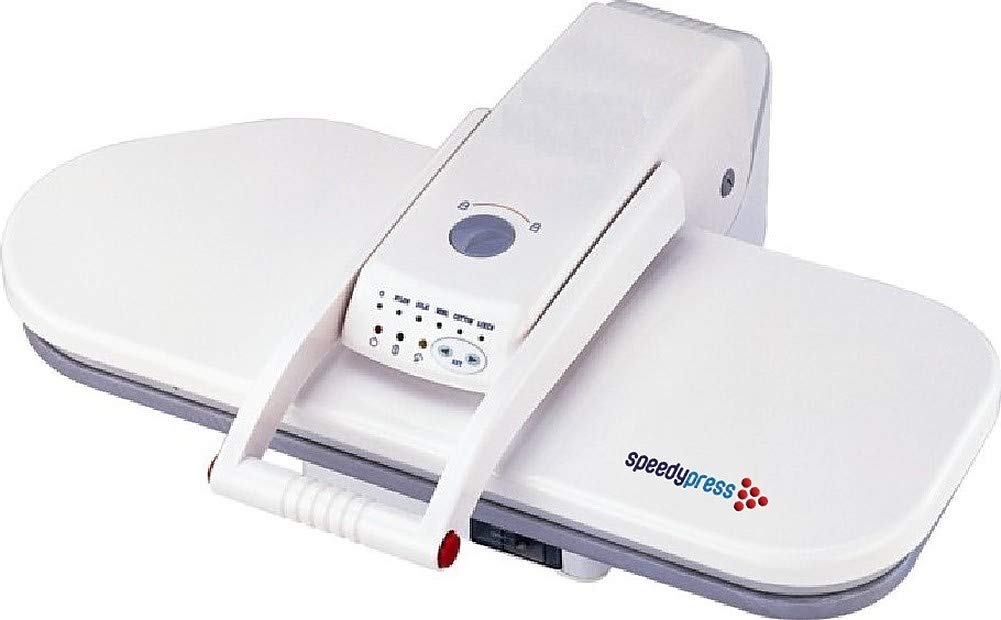 • - Усъвършенствана преса за гладене / професионална преса за парна ютия (бяла) от Speedypress - нормален размер (64 см и 27 см; 1400 вата) за супер бързо гладене.